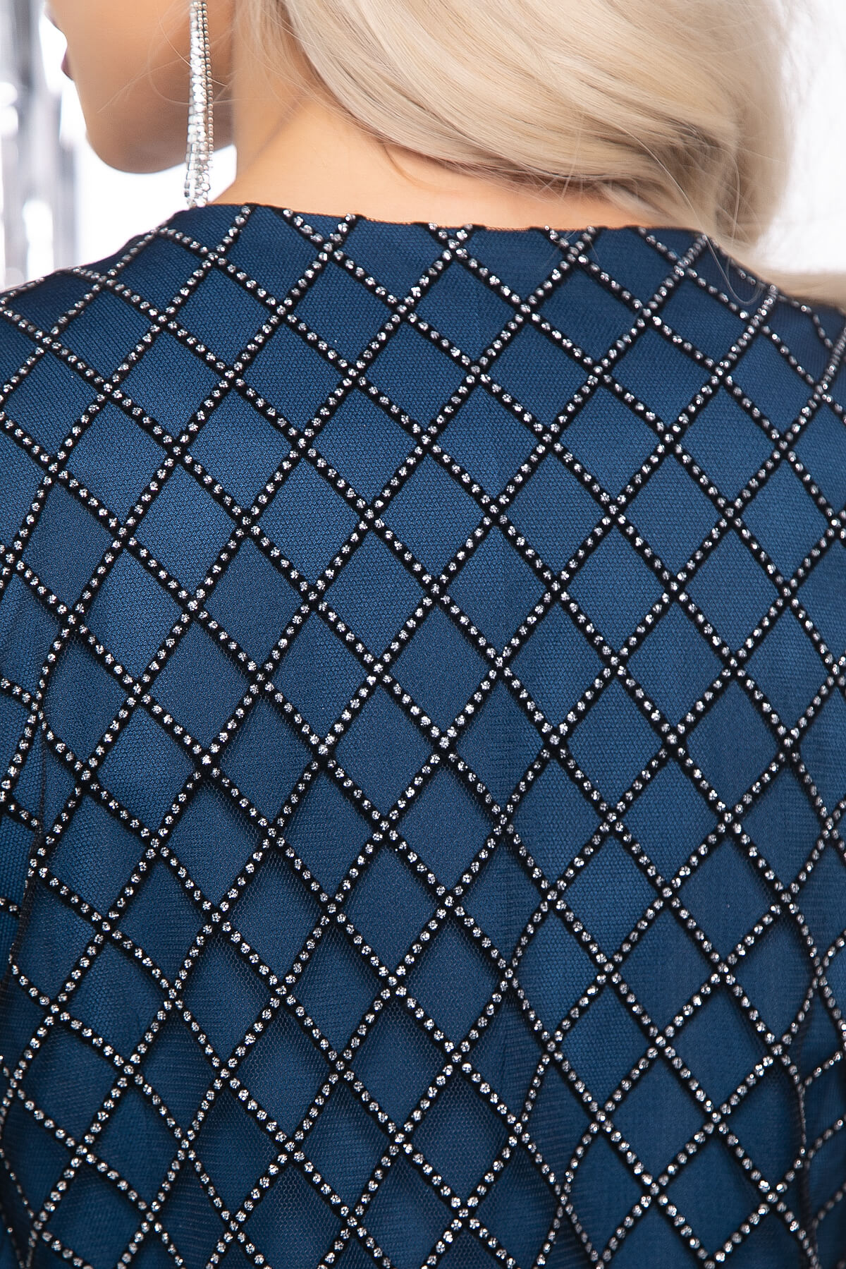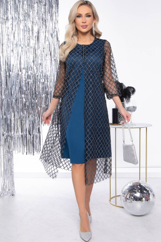 Элегантное нарядное платье из плательной ткани придает женственный шарм вашему образу. Верх платья украшен летящей, удлиненной сеткой, дополненной элегантными стразами, создавая исключительный визуальный акцент. Это изысканное платье станет воплощением стиля и изыска в вашем гардеробе.