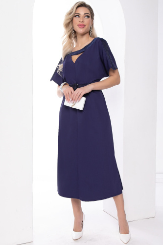 Элегантное платье прямого силуэта состоящее из 2-х видов ткани. Потрясающее платье несомненно подчеркнет Вашу женственность, а его интересный крой расставит грамотные акценты в вашем образе. Горловина округлая. Деликатный V-образный вырез на груди и спинке. Рукав спущенный. Пояс в комплекте. Платье без подклада.
