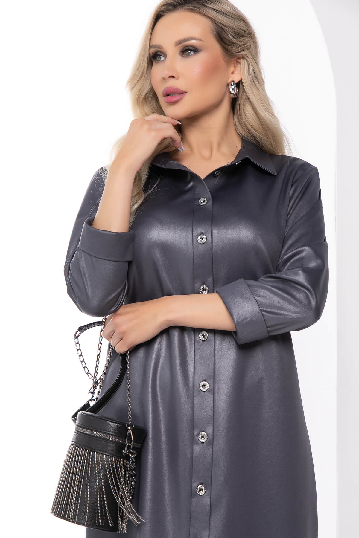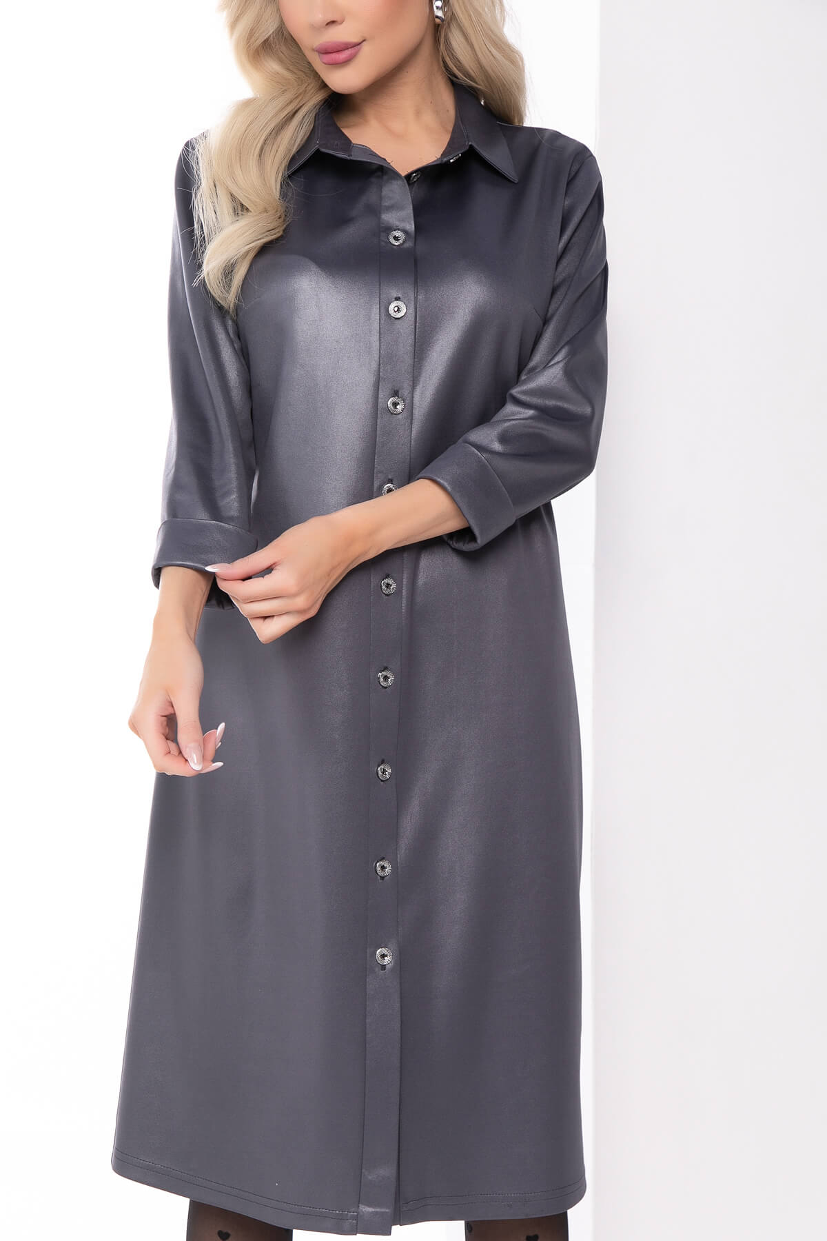 Это не просто платье-рубашка, это искусство в каждой делали. Платье прямого силуэта подчеркивает лаконичность и скрывает недостатки фигуры. Рукав втачной, три четвери, по низу манжет. Отложной воротник придает особый шарм, подчеркивая строгость. Такое платье универсально и подходит как для расслабленного офисного стиля, так и для стильных нарядных образов. Изделие выполнено из плотной, хорошо растяжимой ткани.