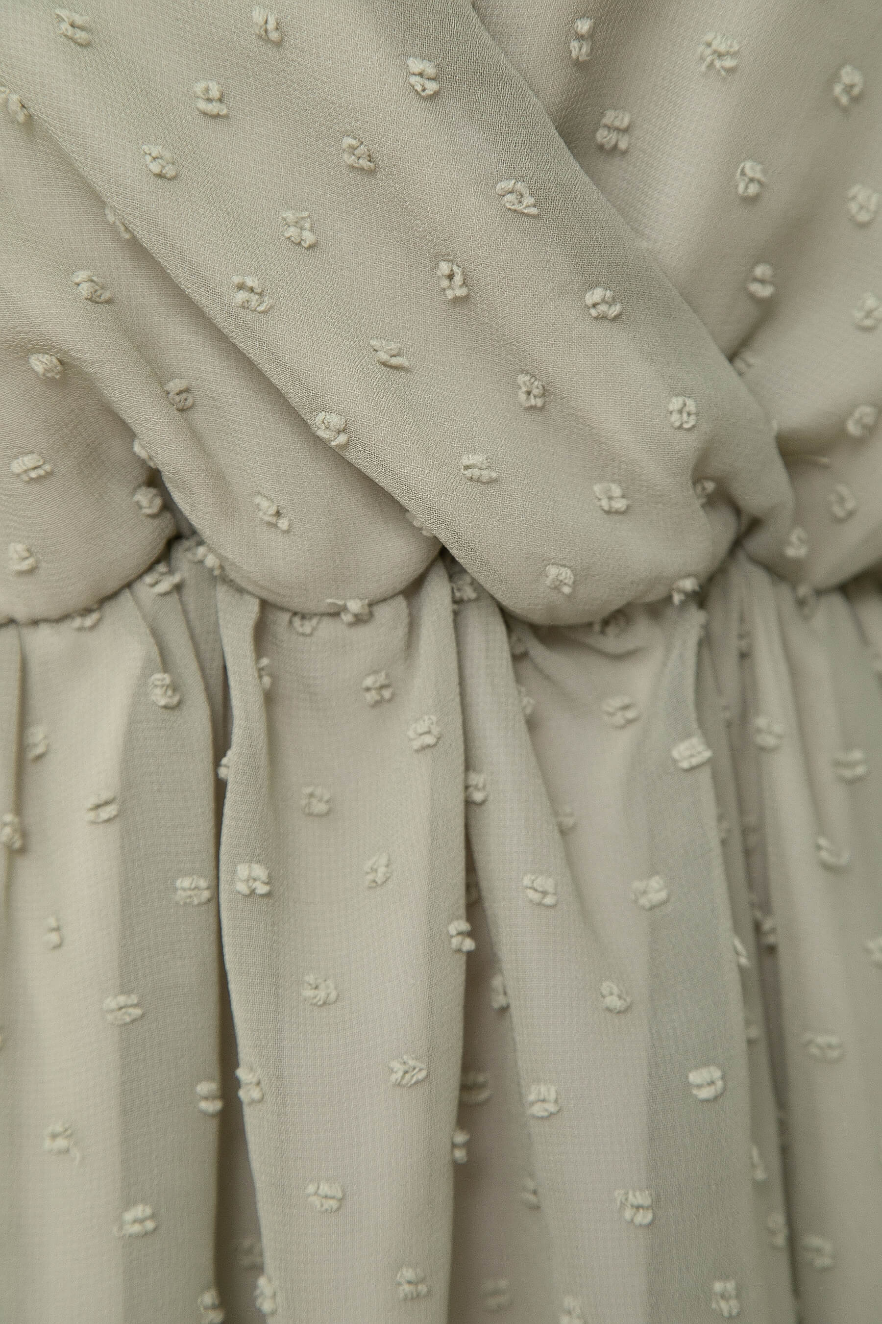 Невероятно женственное платье из шифона прекрасно подойдёт для создания нарядного образа. Платье скроено с имитацией запаха. Верхняя часть платья красиво подчеркивает зону декольте. Летящая юбка добавит образу романтичность. Такая модель прекрасно подойдёт для торжественного мероприятия.