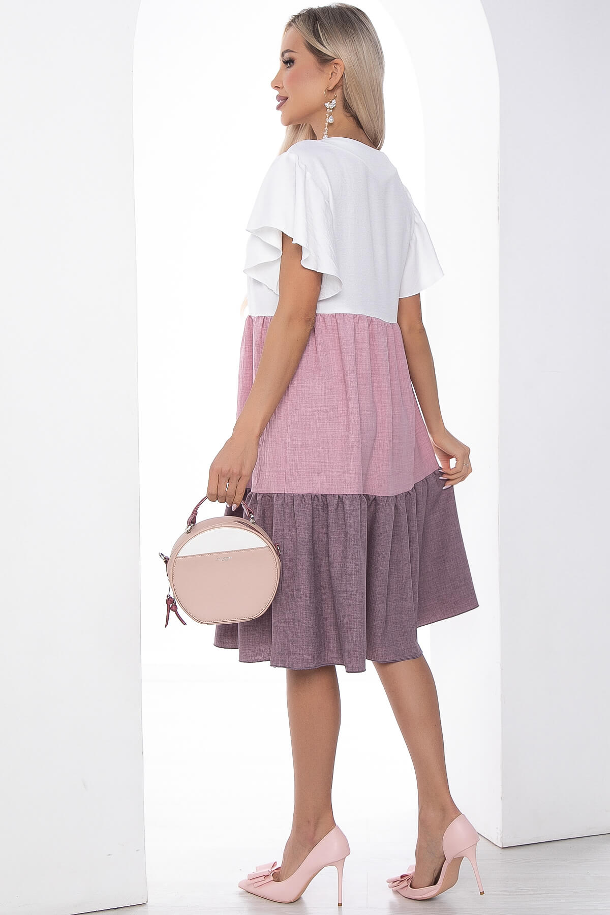 Платье свободного кроя изумительно смотрится как с каблучком, так и с кедами! Юбка с двумя воланом по низу добавляет романтичности и воздушности образу. Рукав скроен по типу "крылышко".