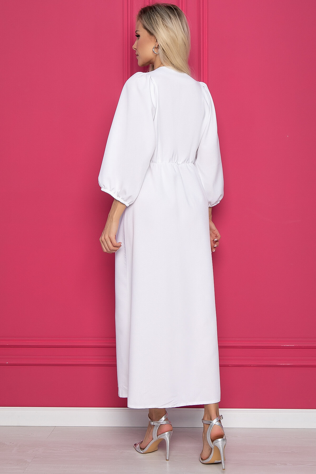 Модная новинка отличный вариант не только для повседневного использования, но и на вечернее или праздничное мероприятие, романтической фотосессии или свидания, свадебного торжества. Талия завышенная на резинке, рукав 3/4 на резинке, длинный разрез по ноге.