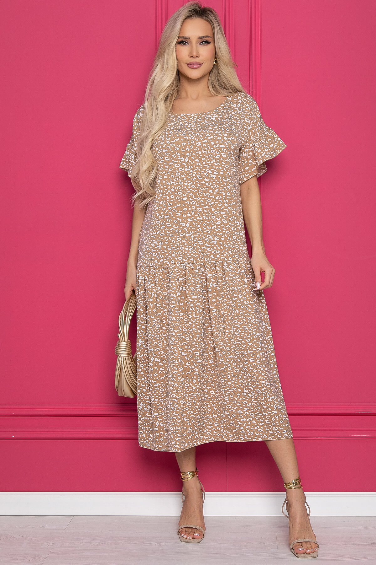 Стильное летнее платье в оттенке "какао" лучше всего сочетается с открытой обувью. Платье можно носить, как с поясом, подчеркивая всю красоту фигуры, так и без - тогда образ получится более расслабленный. Пояс из основной ткани входит в комплект.