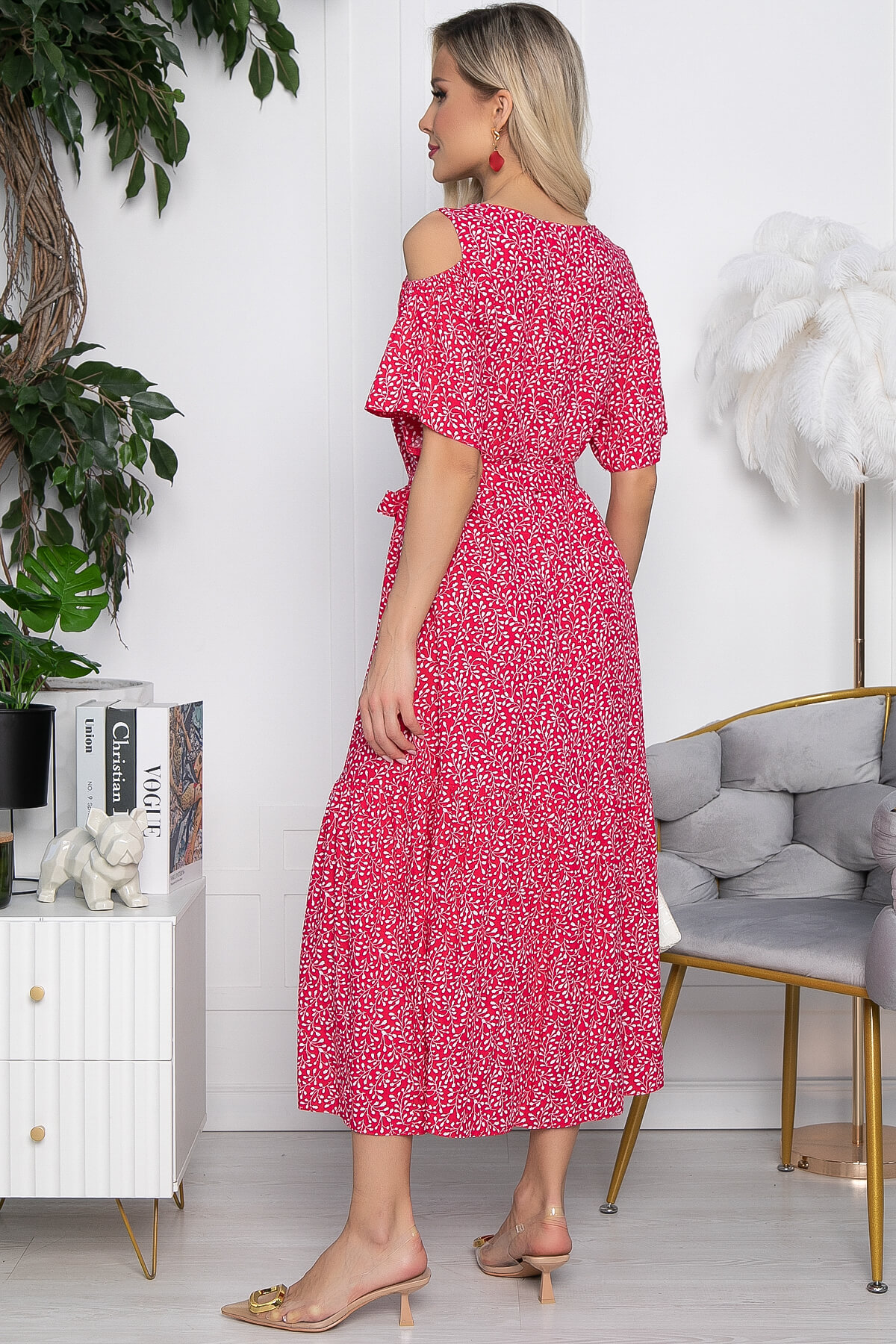Шикарное платье с акцентными рукавами не оставит без внимания окружающих. Вырезы на плечах придадут утонченность и добавят образу кокетства. Платье можно носить, как с поясом, подчеркивая всю красоту фигуры, так и без - тогда образ получится более расслабленный.