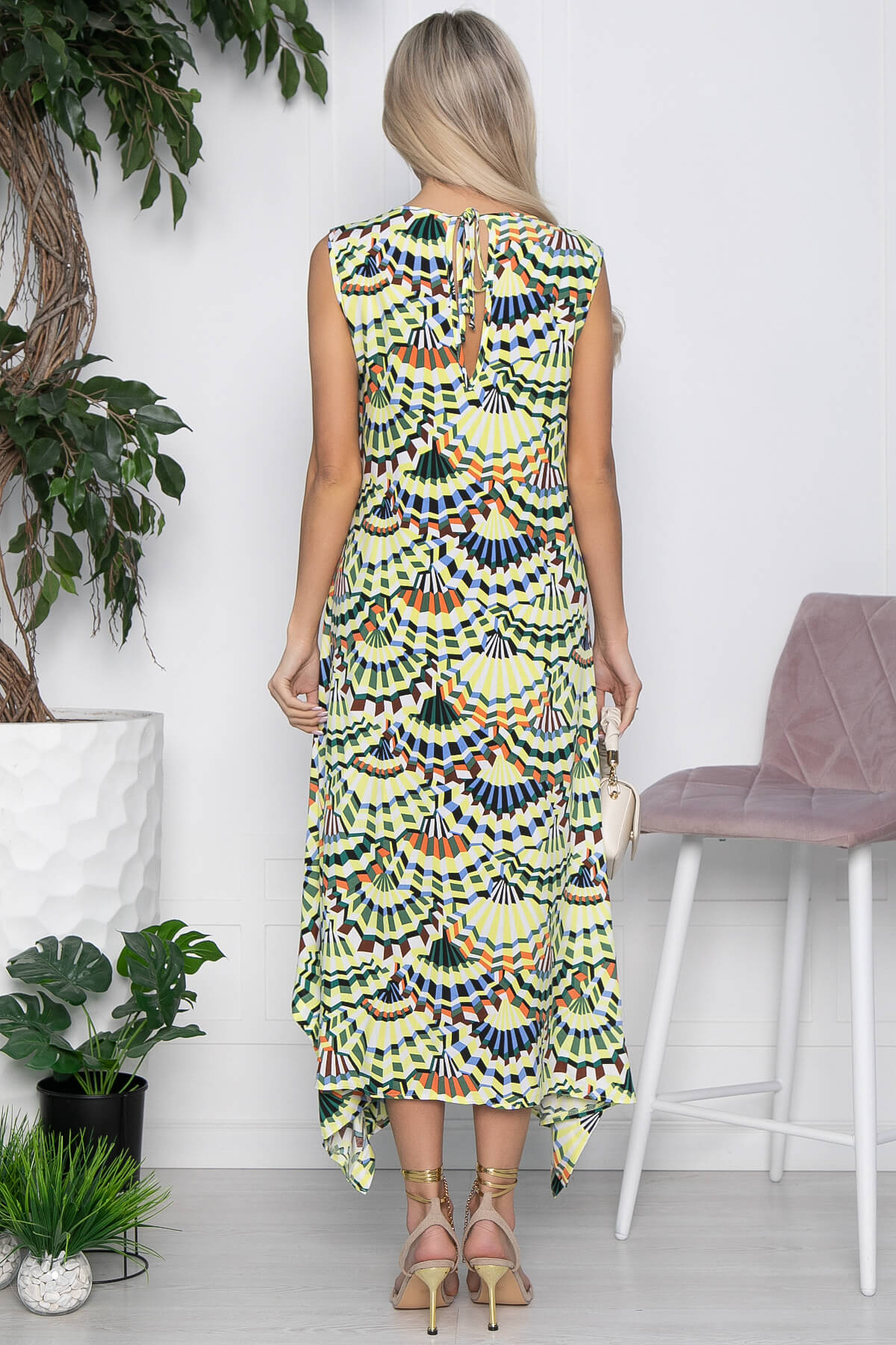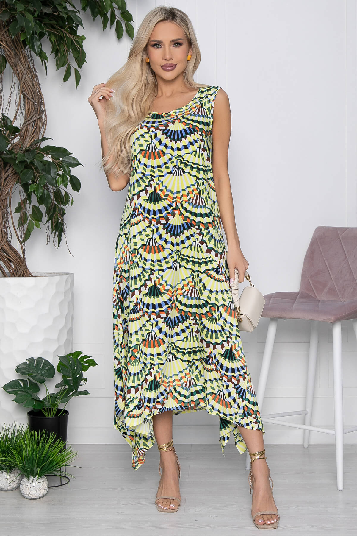 Платье отлично придаст вашему образу легкости и добавит летнего настроения. Без застёжки, по спинке вырез-капля на завязках. Юбка имеет расширение по нижней части, что позволяет добиться воздушности и изящества. По бокам снизу клинья.