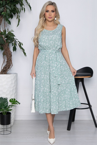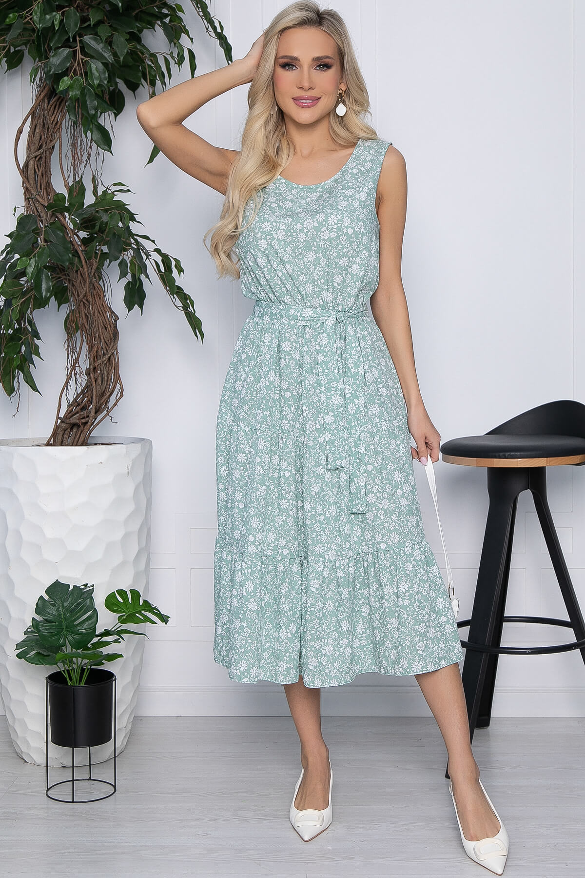 Платье А-силуэта, длиной миди красиво подчеркнёт все достоинства вашей фигуры. Станет отличным вариантом для отпуска. В комплект входит пояс из основной ткани.