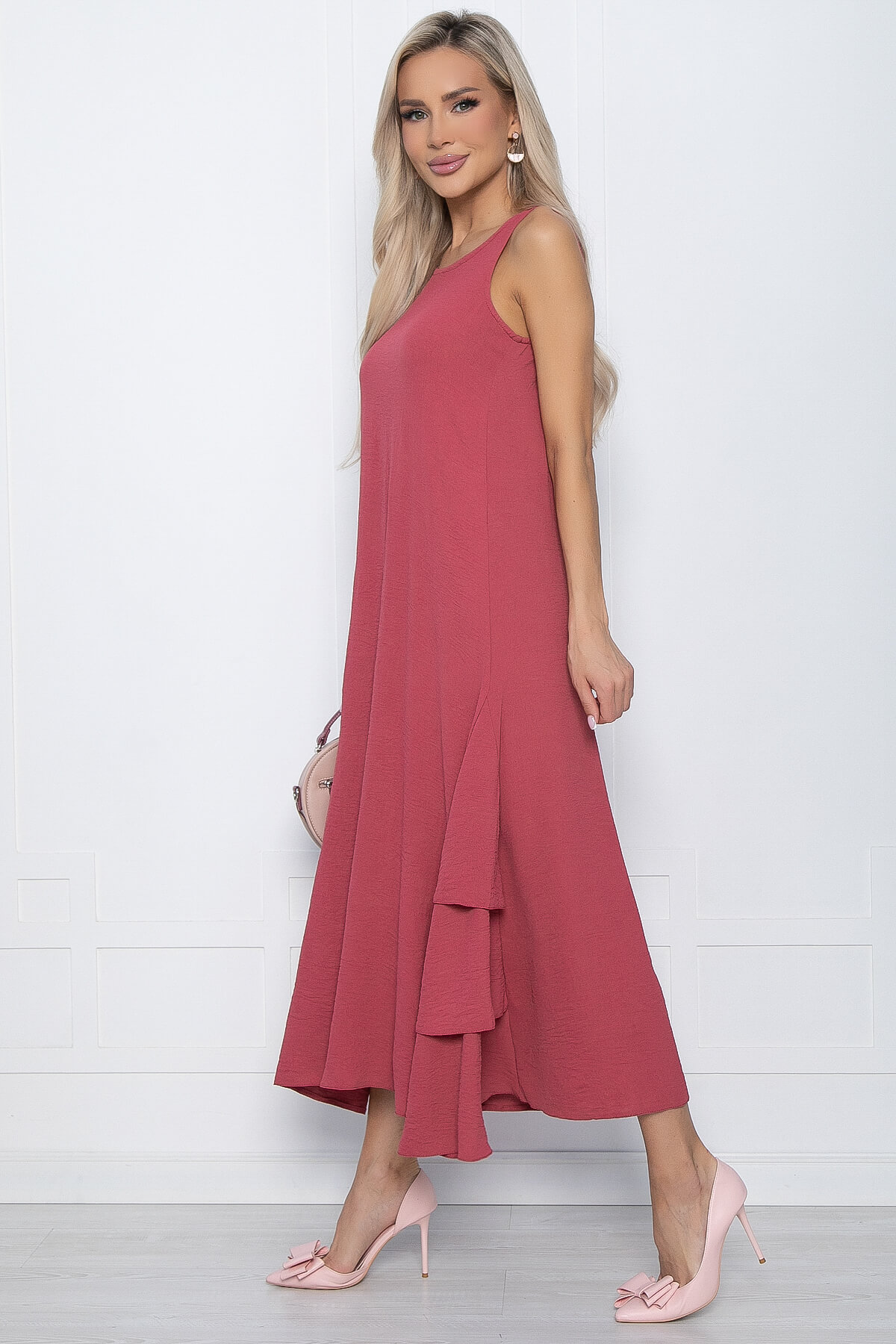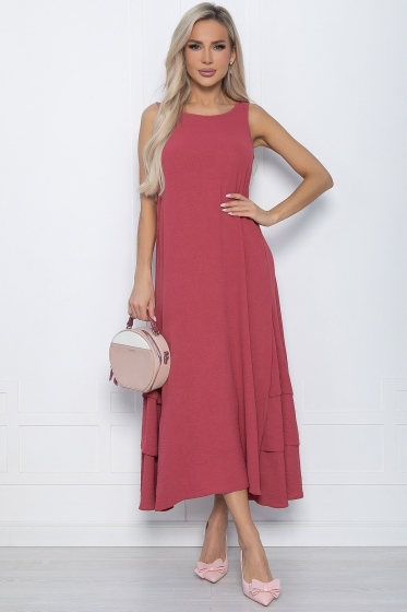 Платье со вставками в виде нескольких ярусов — необычная модель в романтическом стиле, которая позволит выглядеть женственно и привлекательно каждый день. Фасон А-силуэта без рукавов плавно расклешается к низу, не подчеркивает нюансы фигуры, позволяет чувствовать себя комфортно и уверенно. Главный акцент платья — боковые вставки в виде клиньев, которые добавляют образу легкости и создают эффект летящей походки. Носить модель можно как в качестве самостоятельного элемента гардероба, так и поверх базовых однотонных футболок, топов.