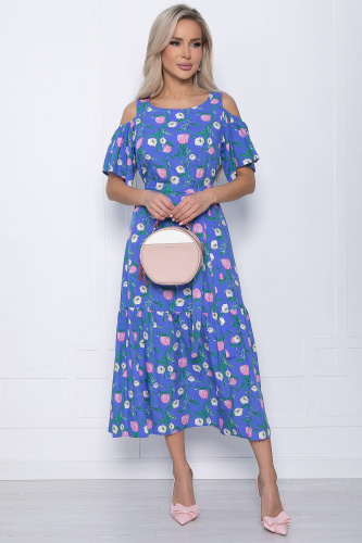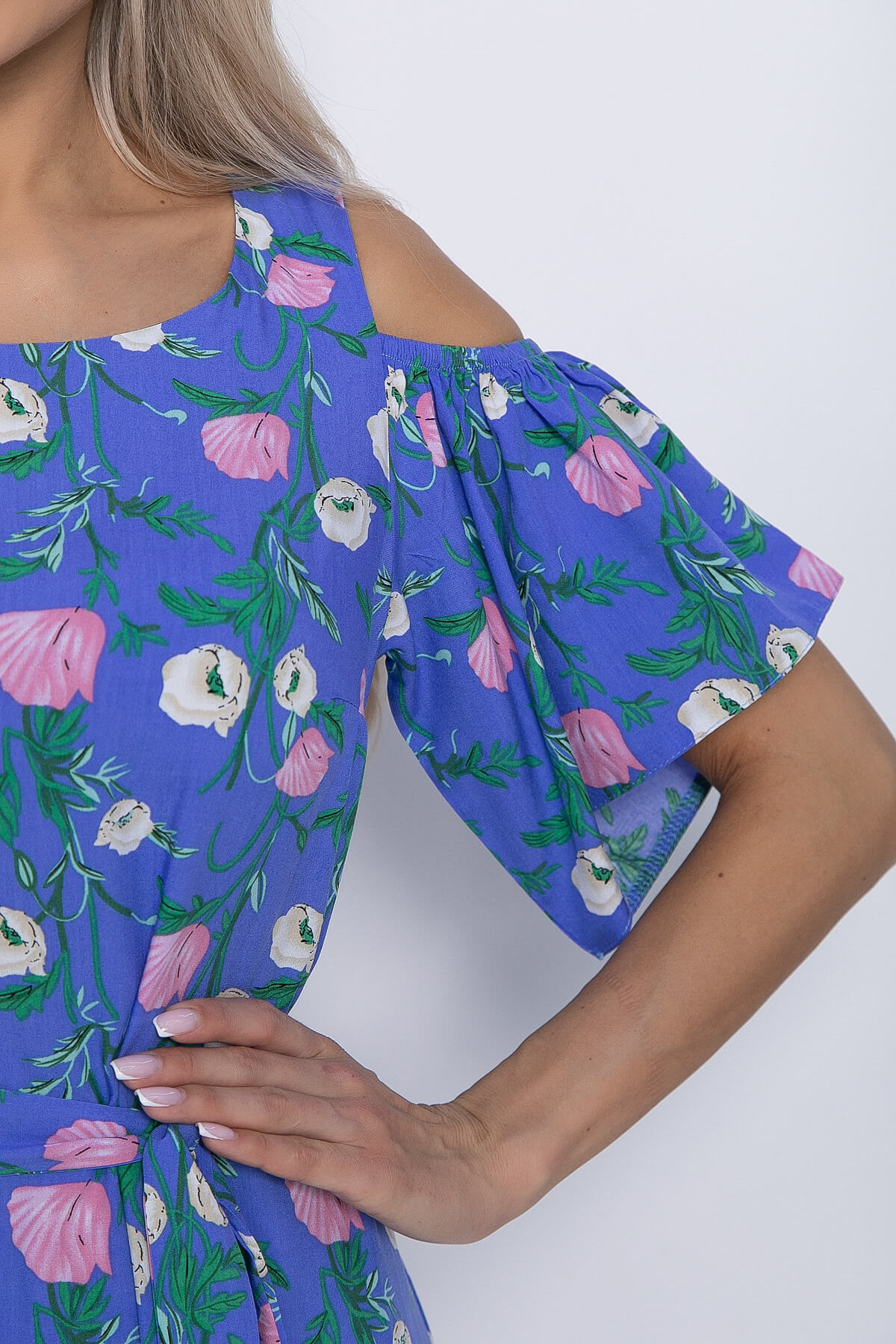 Шикарное платье с акцентными рукавами не оставит без внимания окружающих. Вырезы на плечах придадут утонченность и добавят образу кокетства. Платье можно носить, как с поясом, подчеркивая всю красоту фигуры, так и без - тогда образ получится более расслабленный. Изделие по низу украшает волан. Пояс из основной ткани входит в комплект.
