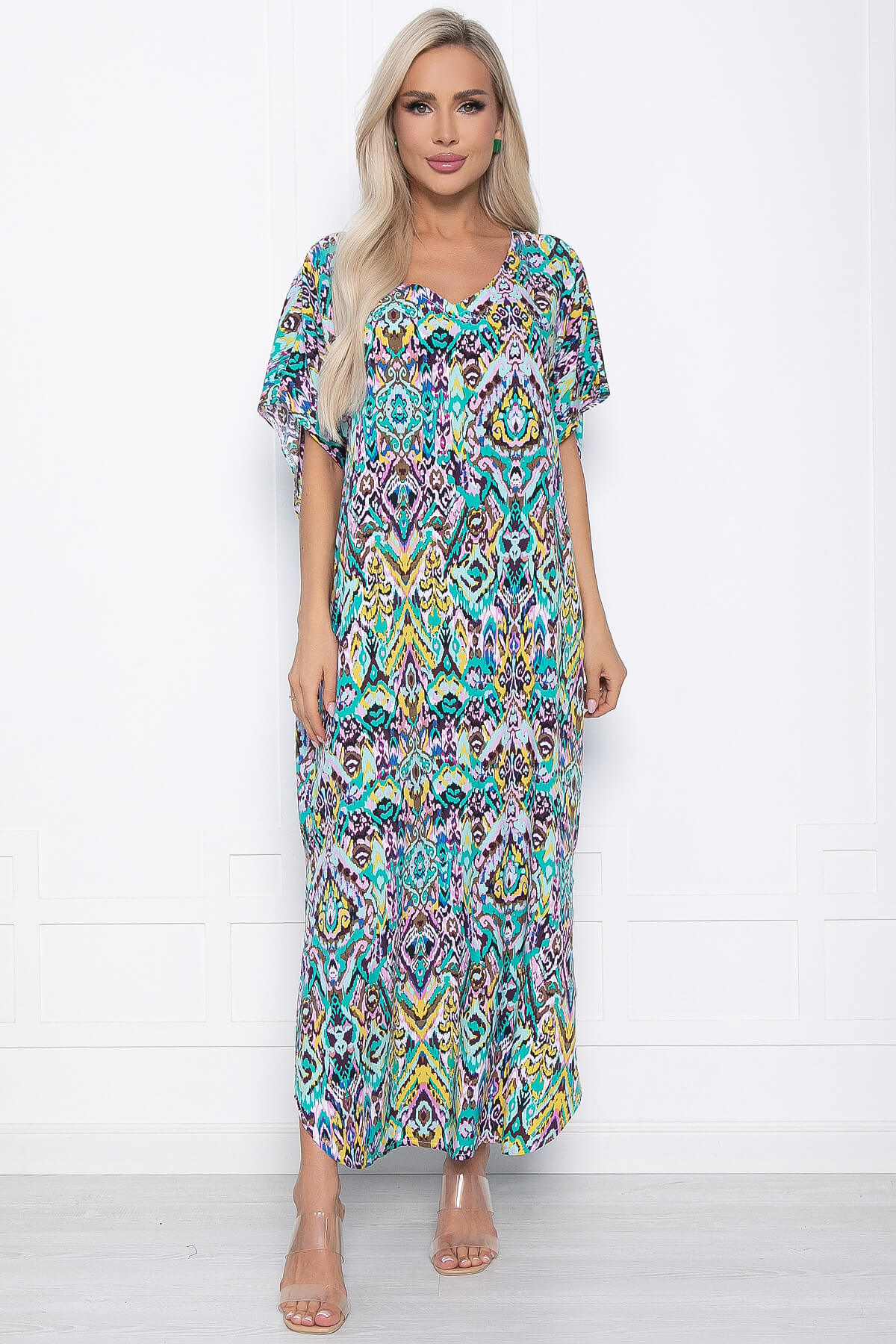 Летнее платье с поясом и рукавом в стиле «летучая мышь» станет идеальным элементом гардероба в жаркую погоду. Платье невероятно комфортно за счет свободного кроя, поэтому может стать вашим любимым для отдыха и на каждый день. Прекрасно подойдет для романтичных вечеров и вечерних прогулок у моря. В комплект входит пояс из основной ткани.