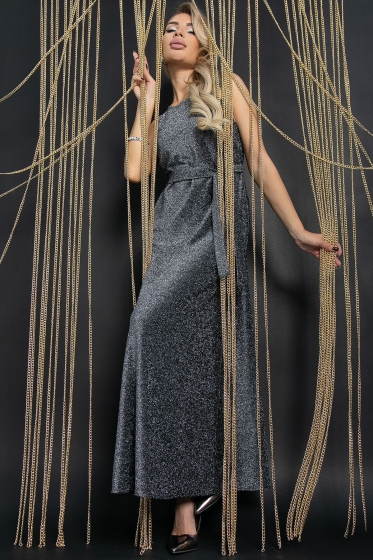 Вечернее платье макси-длины, выполненное из трикотажа с люрексом — это настоящая находка для любителей элегантности и стиля! Благодаря своему универсальному крою, оно станет вашим верным спутником на любом торжественном мероприятии. Чтобы сделать образ более выразительным, дополните его каблуками, аксессуарами и, при желании, пиджаком. В комплект входит пояс из той же ткани, который придаст образу завершенность и подчеркнёт вашу изящную талию.