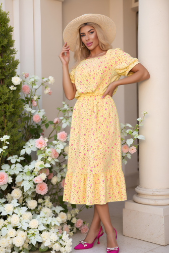 Летнее платье, которое подчеркнёт вашу женственность и подарит ощущение комфорта. Платье с квадратным вырезом горловины и рукавами-фонариками на резинке создают романтичный и игривый образ. Волан по краю юбки добавляет модели игривости. По талии на резинке. Идеально подходит для тёплых дней. Сочетайте его с любимой обувью и аксессуарами, чтобы создавать стильные и привлекательные образы как для повседневной носки, так и для особых случаев.