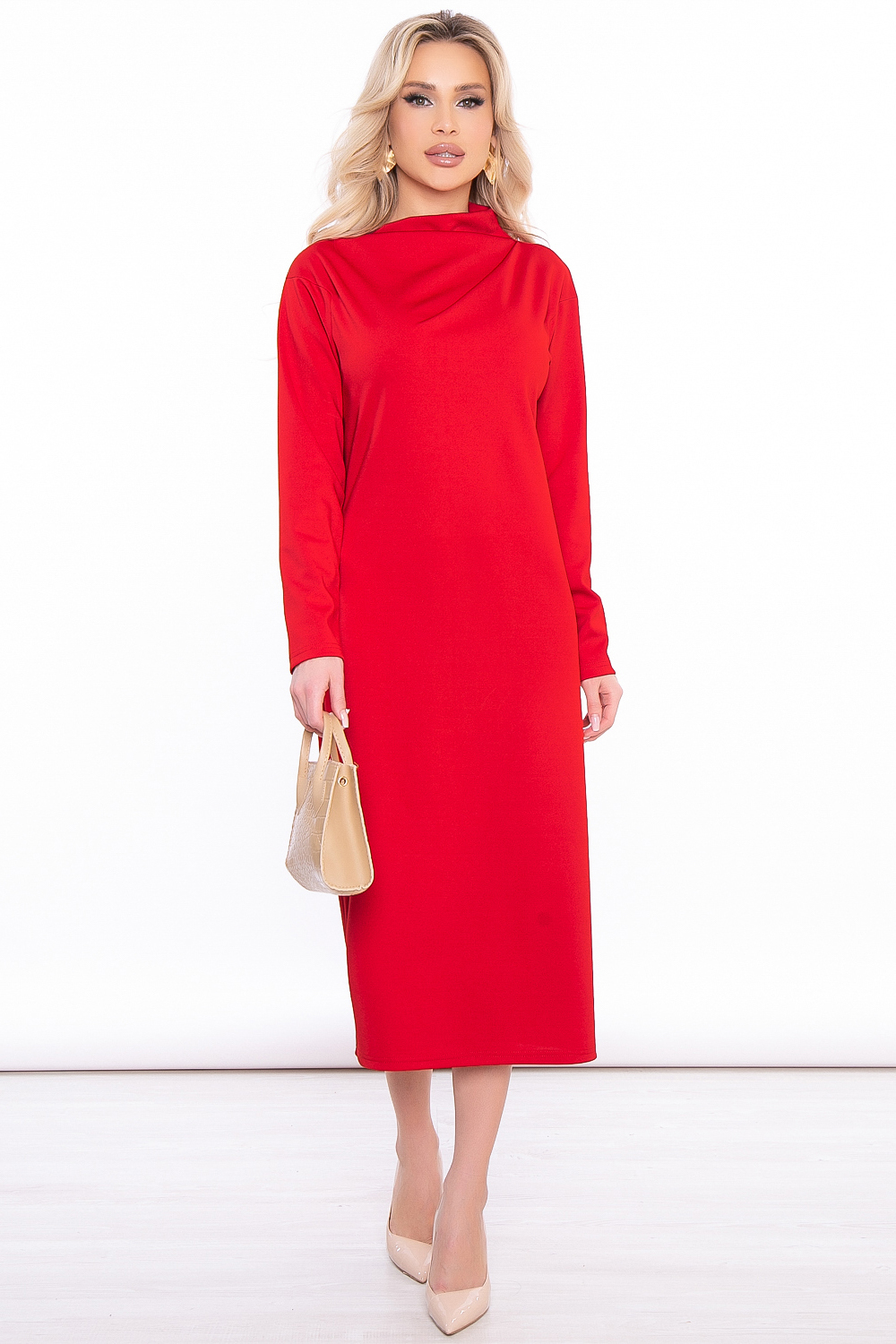 Восхитительное платье длины миди в красном оттенке. Идеально подойдет на каждый день, но, добавив в образ яркие аксессуары, Вы сможете затмить окружающих своей красотой и элегантностью на любом вечернем мероприятии.