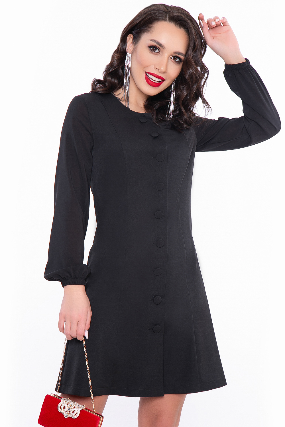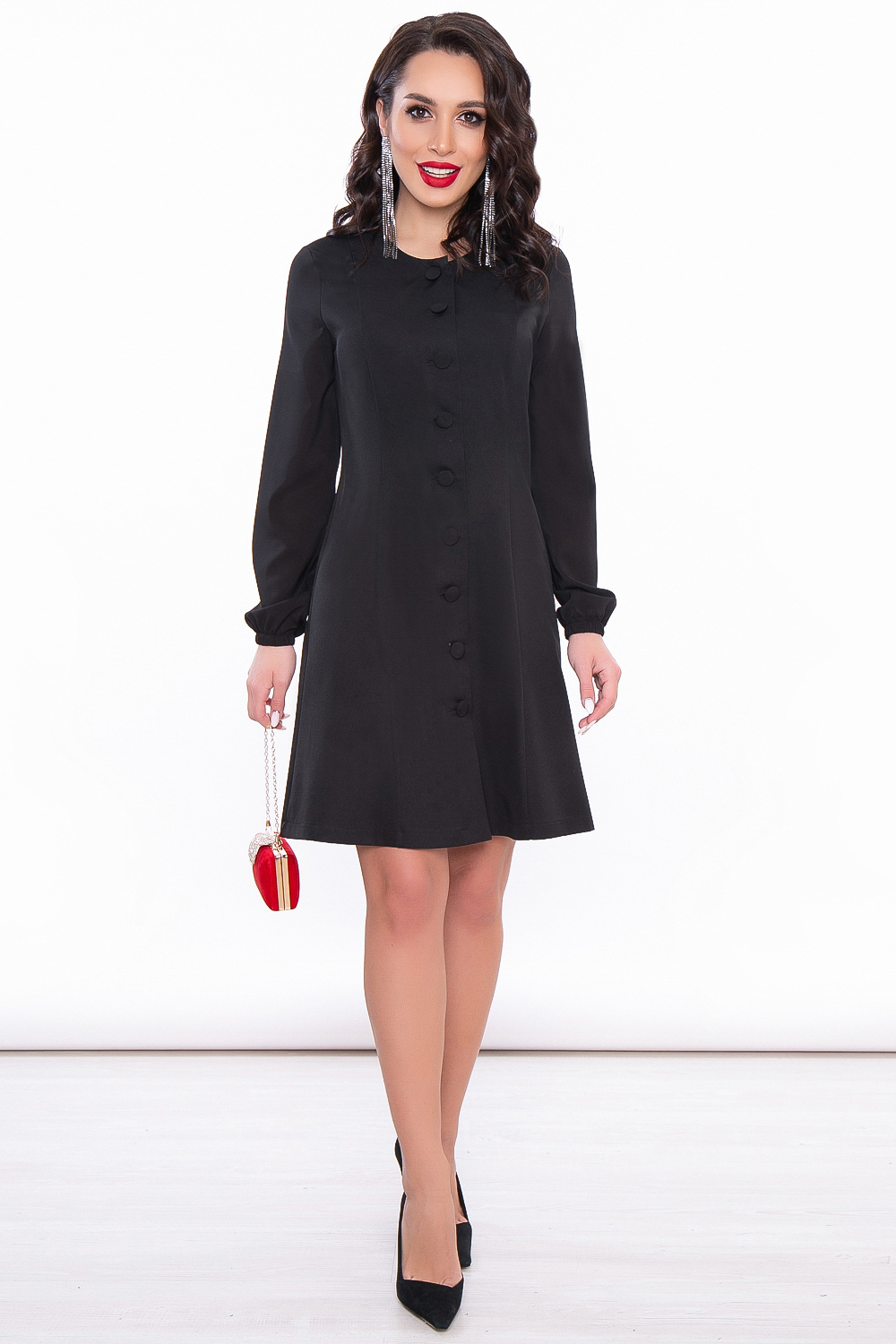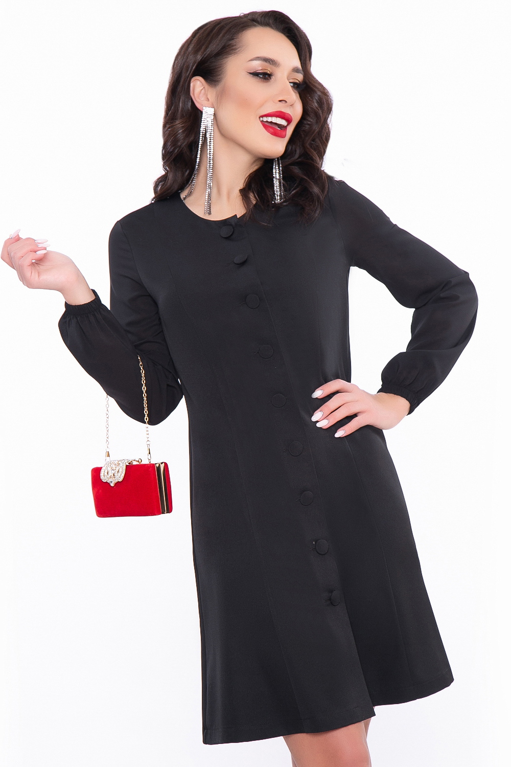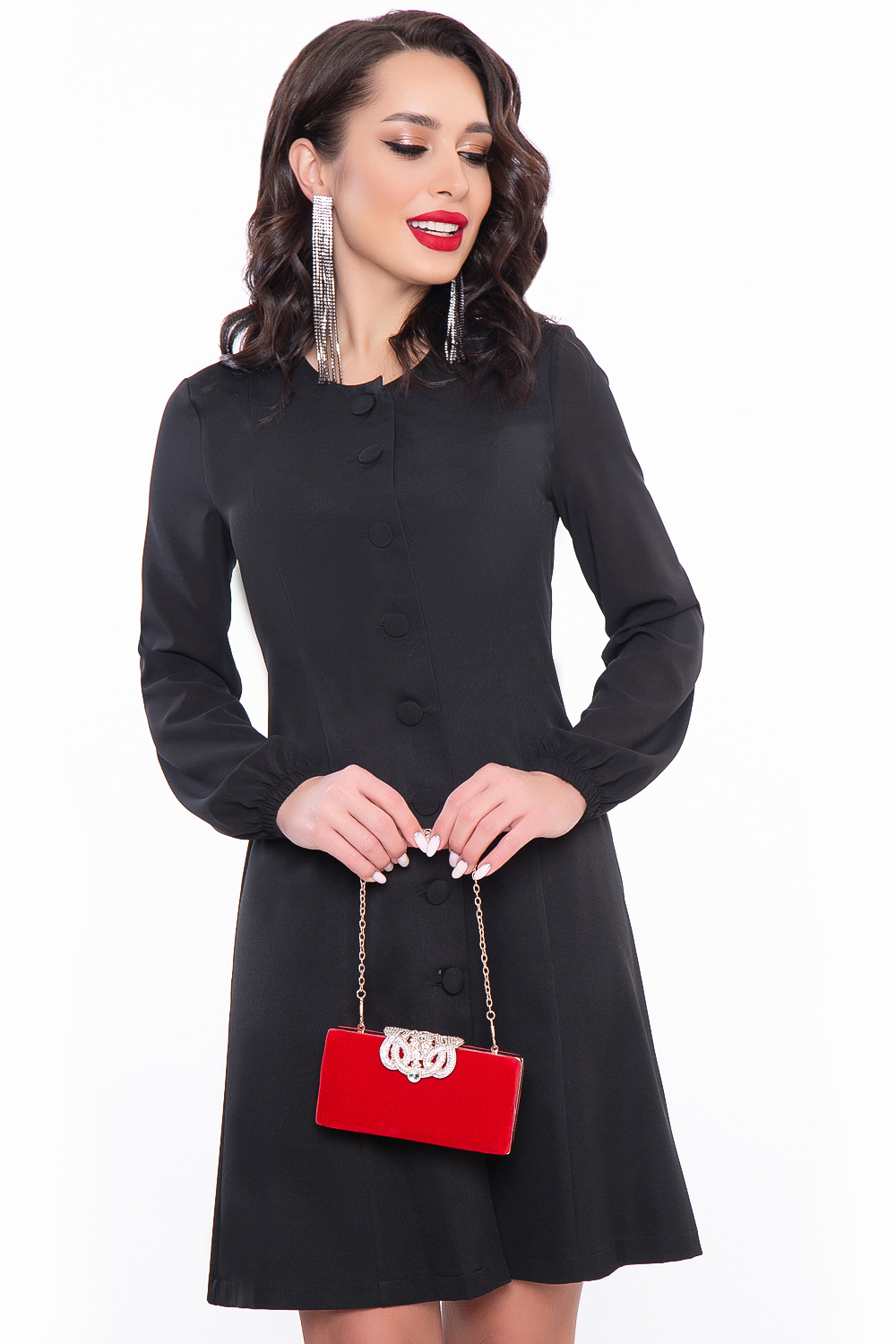 - Короткое платье-пиджак на пуговицах;