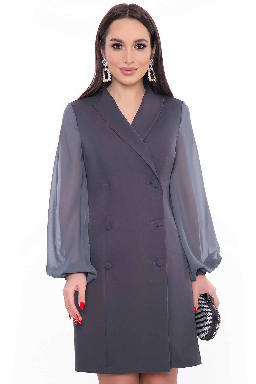 - Короткое платье-пиджак на пуговицах;
