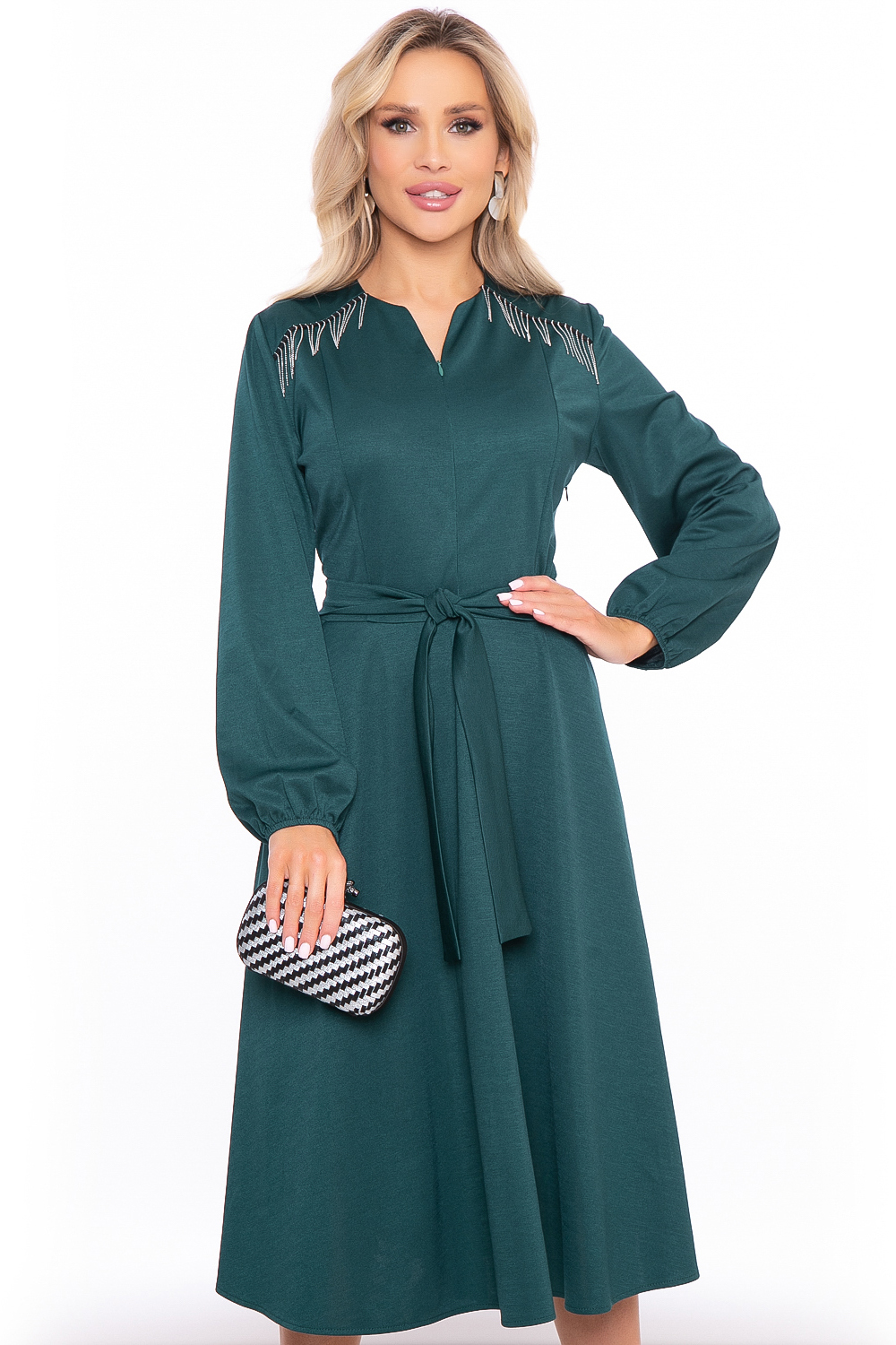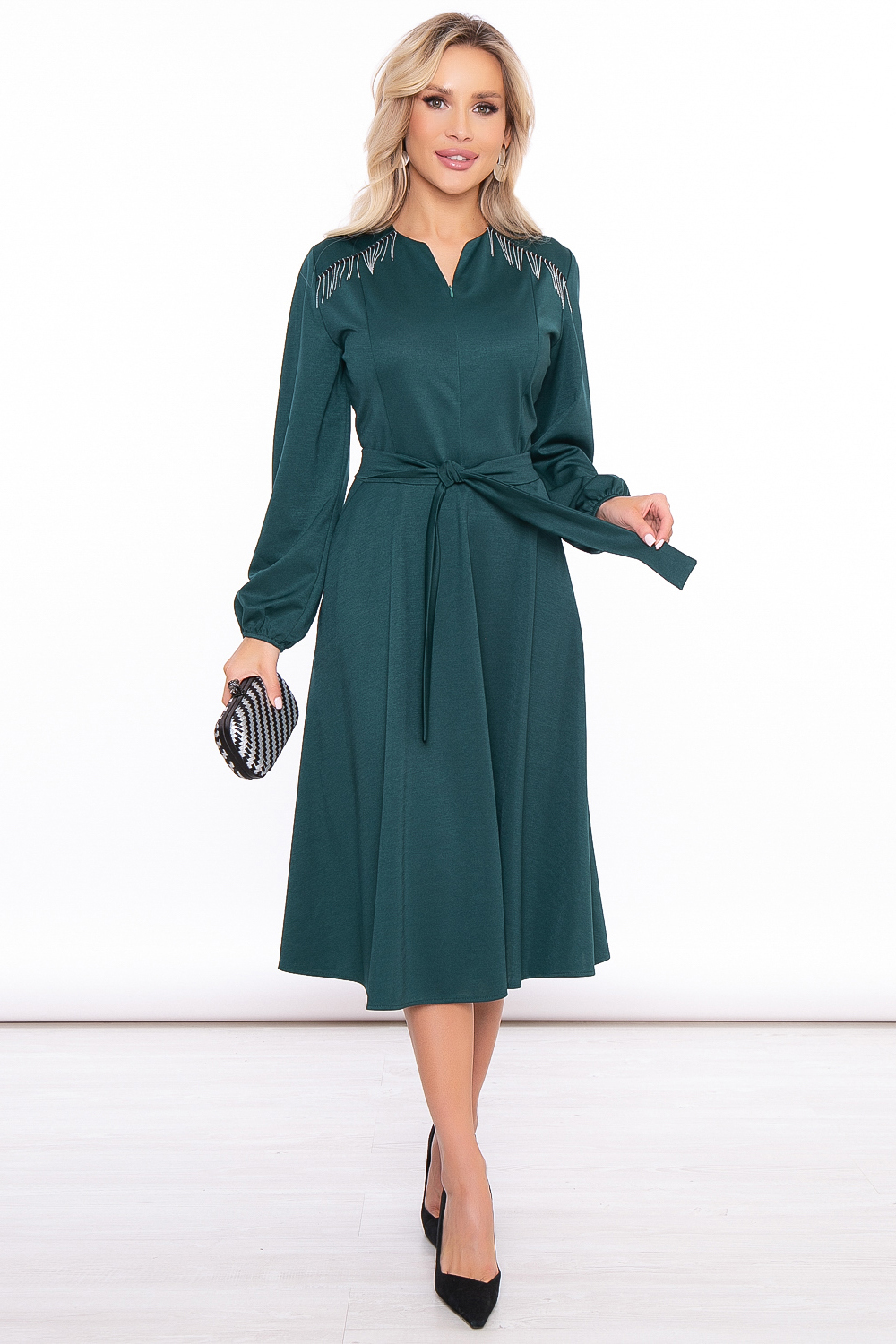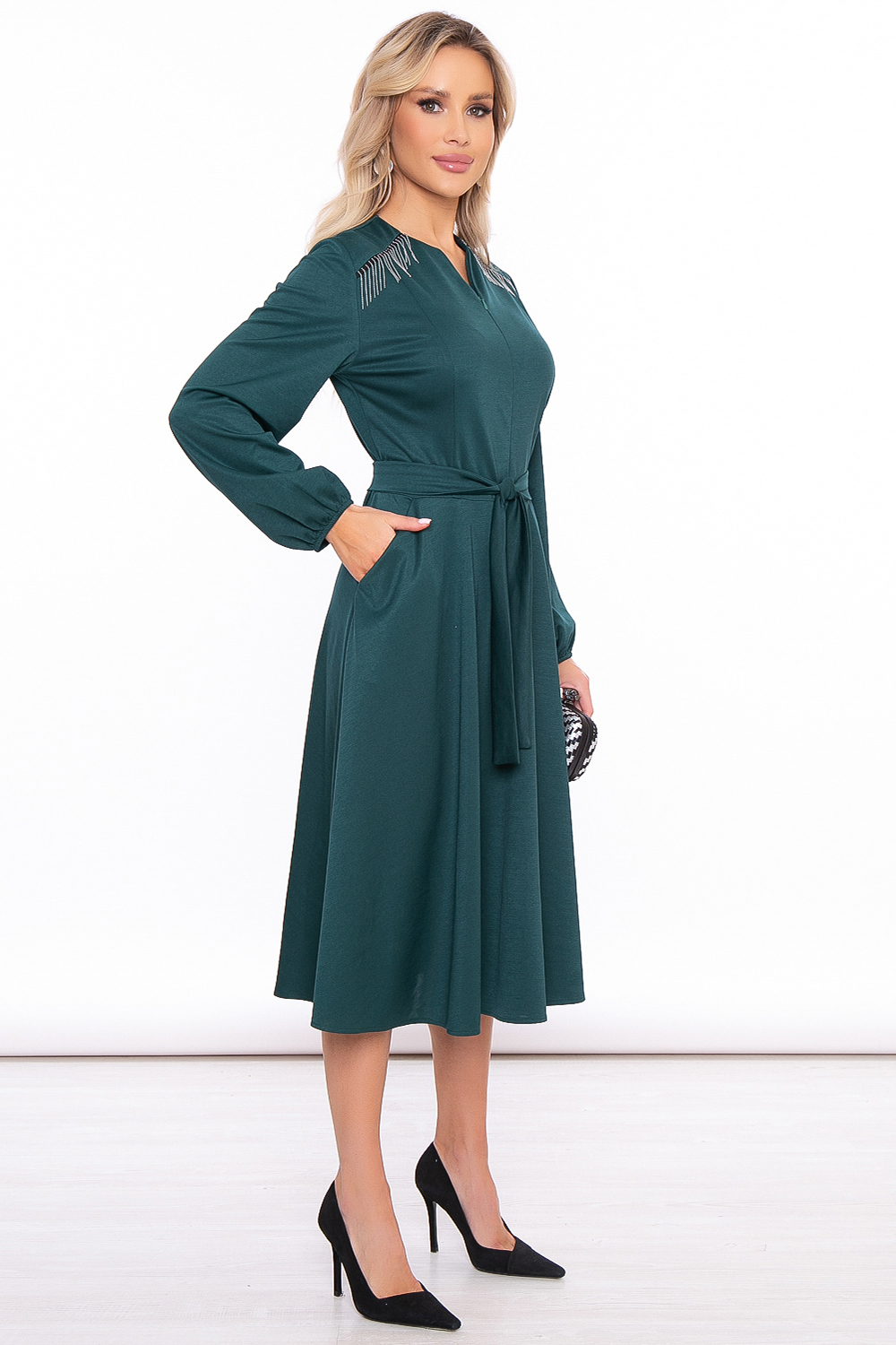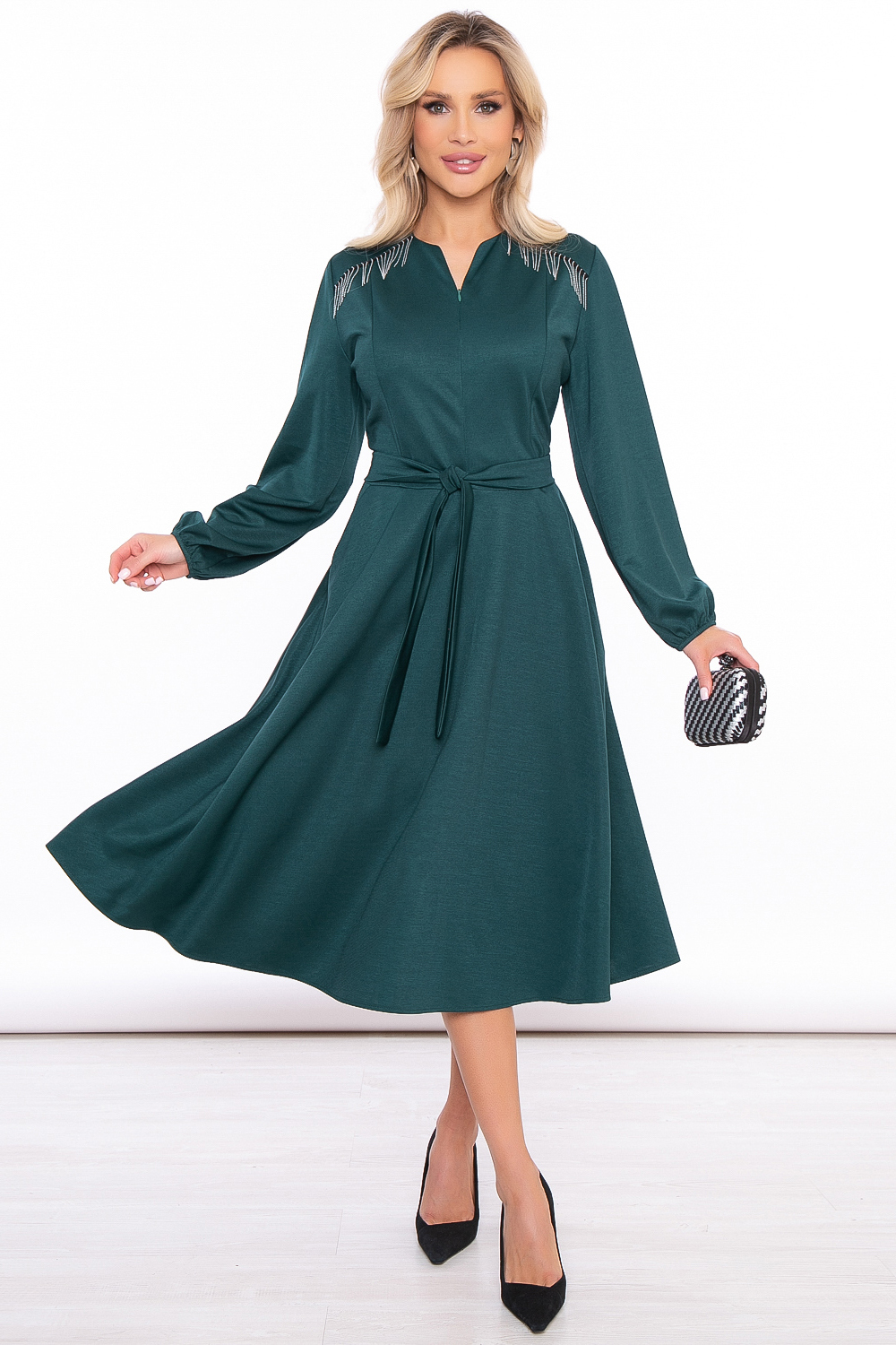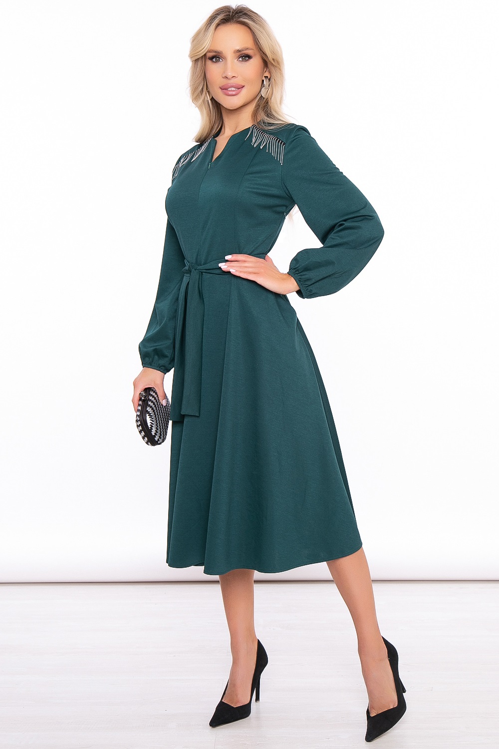 Шикарное платье длины миди в красивом изумрудном оттенке идеально сочетает в себе все необходимые для платья качества: красоту, комфорт и качество.
