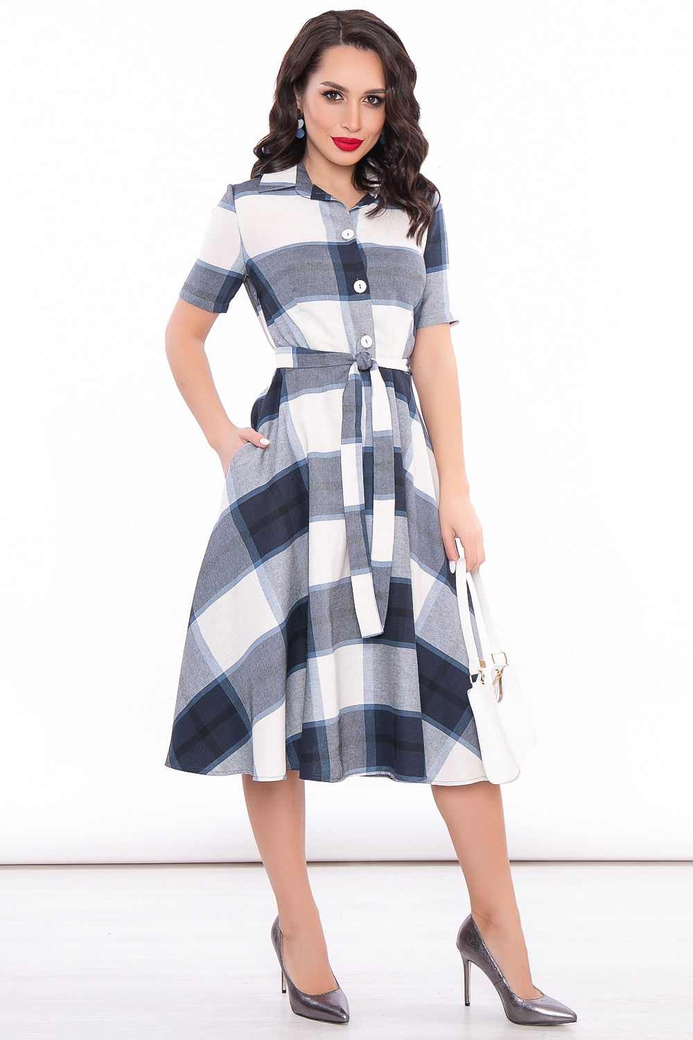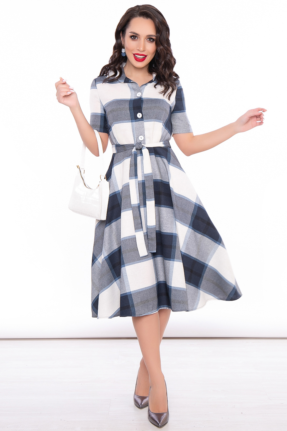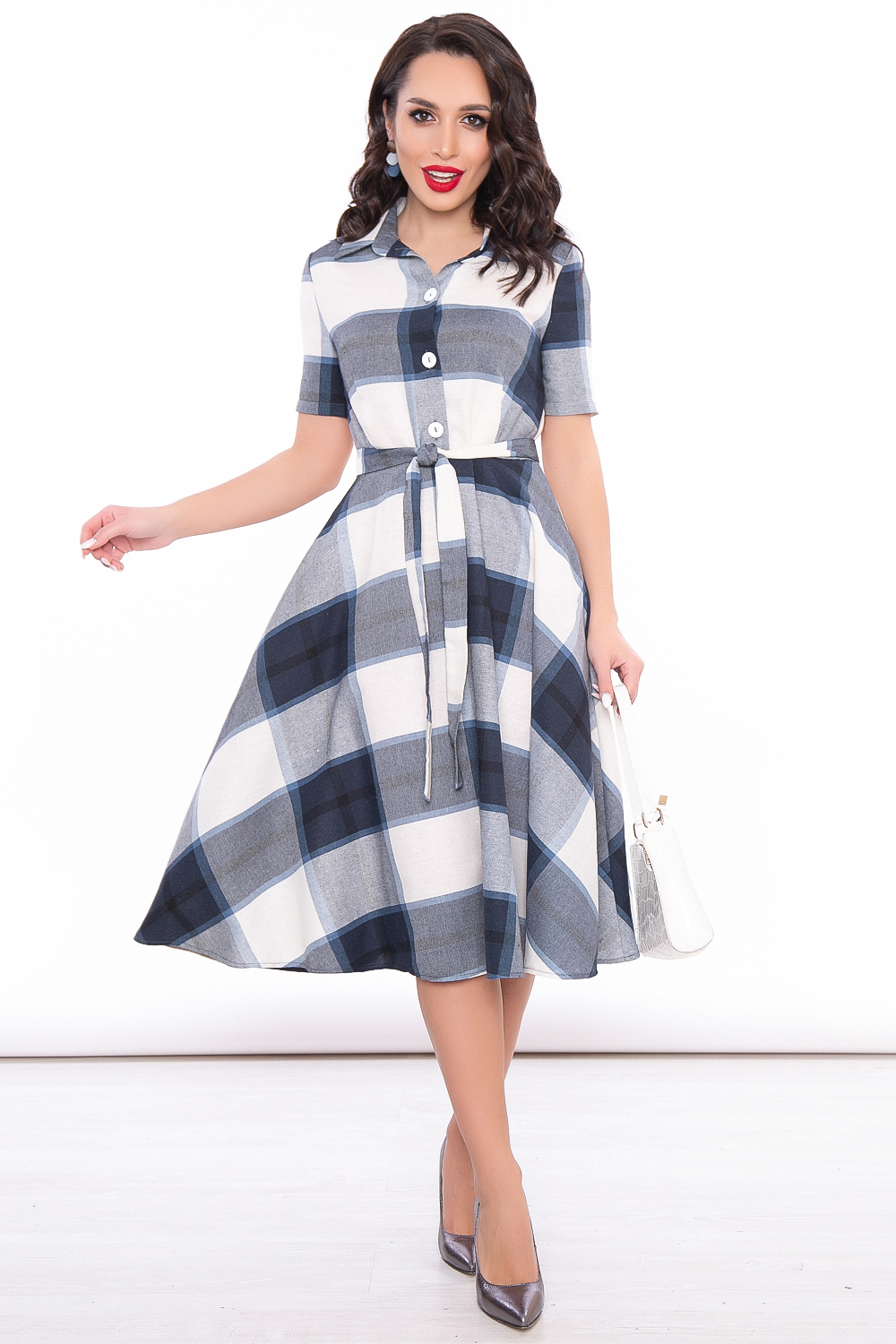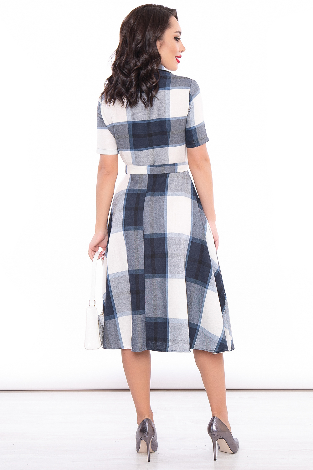 Платье в клетку невероятно женственного силуэта из натурального материала создаст стильный, лаконичный образ.