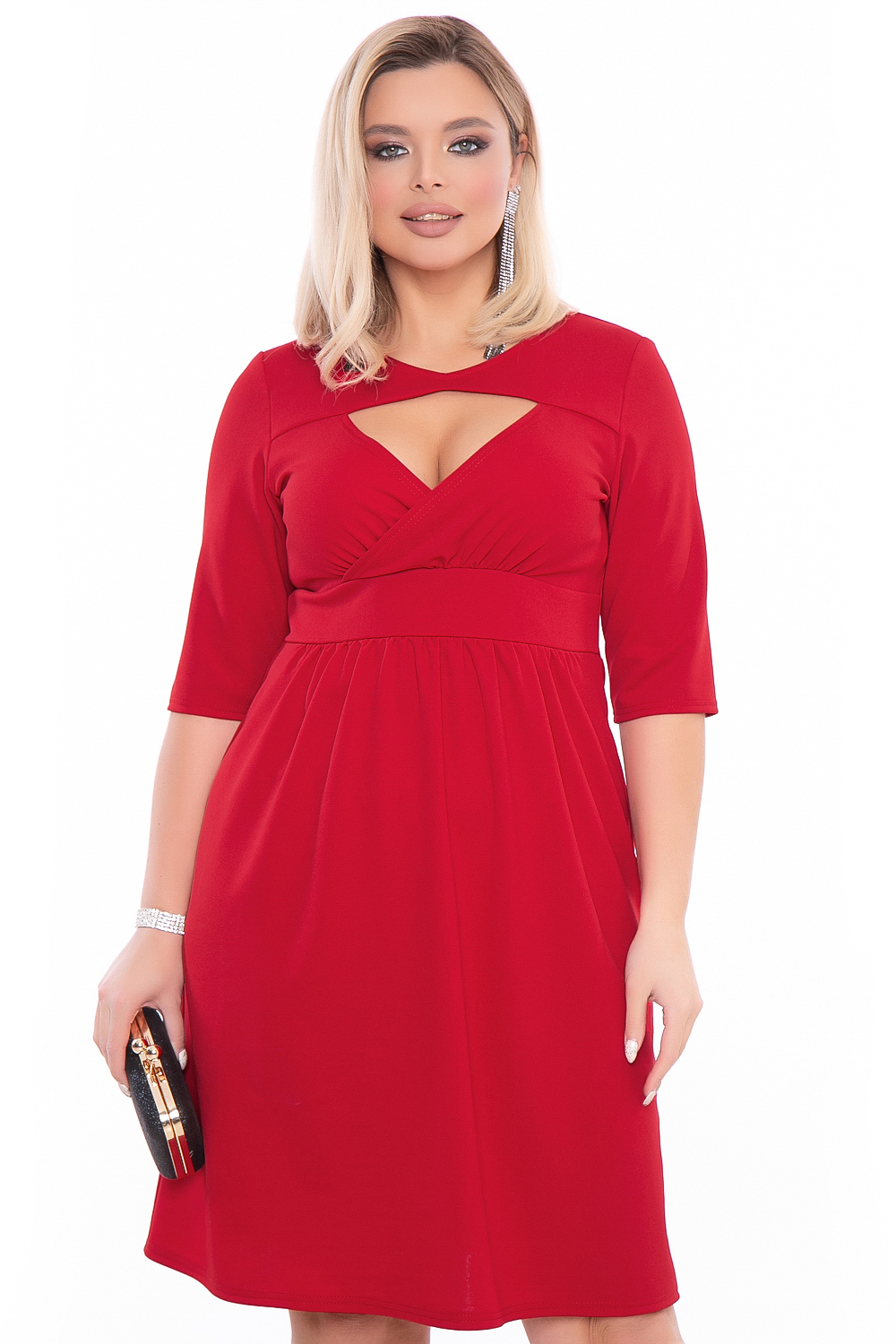 Кокетливое платье средней длины с акцентным лифом. Шикарно подчеркнёт достоинства женской фигуры. Лиф выполнен в виде запаха со сборкой с притачной фигурной кокеткой. Горловина округлая с небольшим углублением по центру, которое еще больше украшает зону декольте. Под грудью имитация пояса.