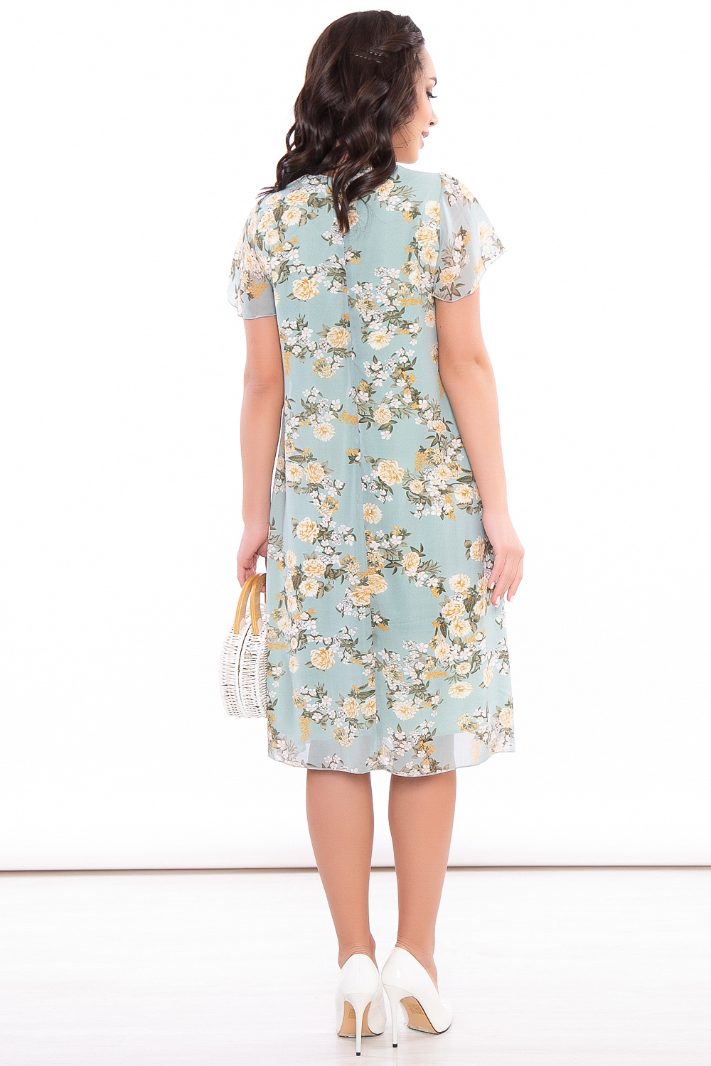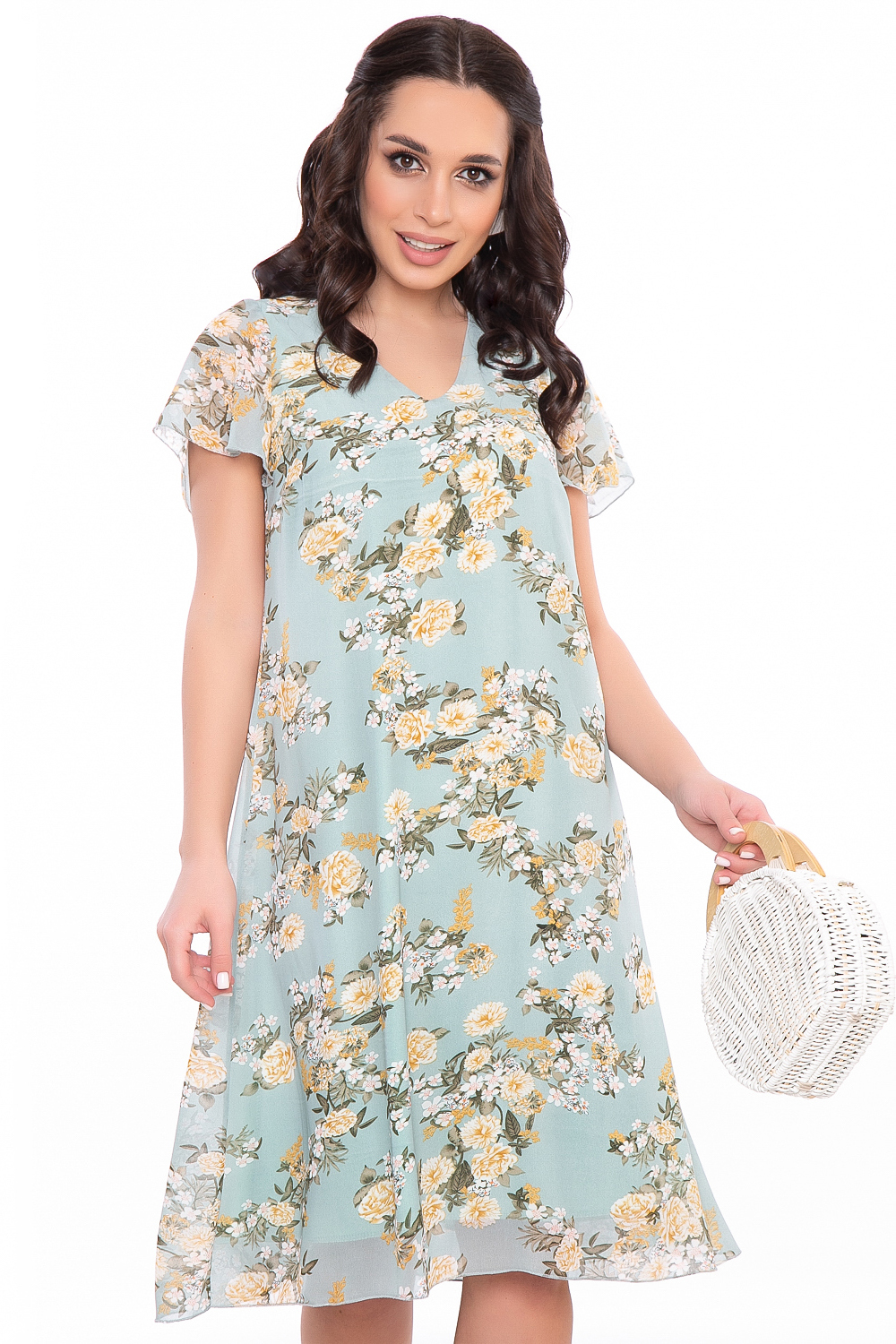 Шифоновое платье свободного кроя с коротким рукавом создаст весеннее настроение и сделает Ваш образ лёгким и женственным. Мягкий V-образный вырез горловины. Платье на подкладке.