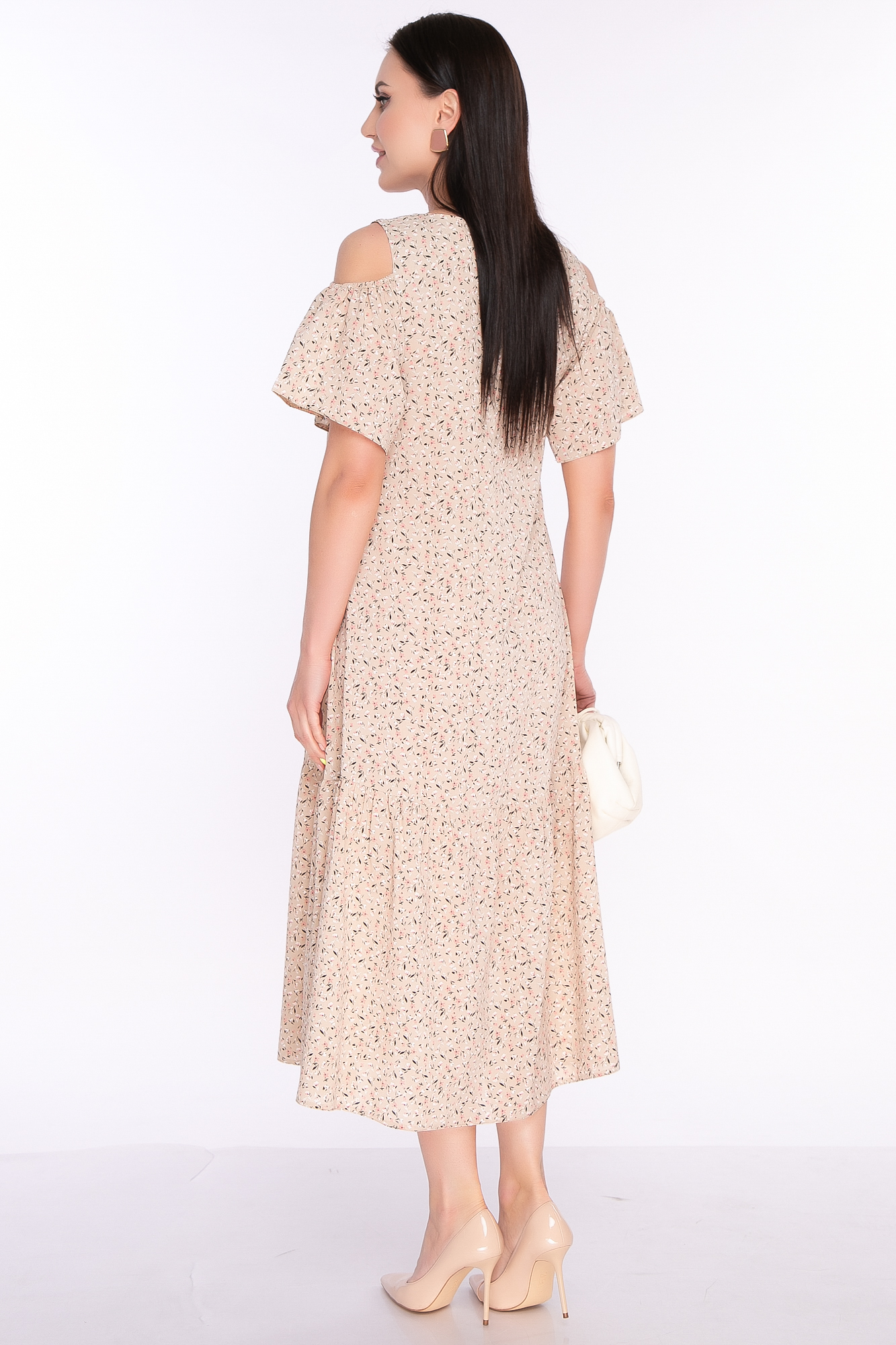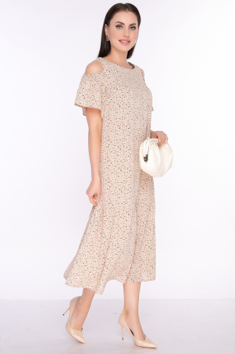 Элегантное платье свободного кроя в нежном бежевом оттенке прекрасно дополнит Вашу летнюю капсулу. Шикарная свободная юбка, с широким воланом добавляет романтичности образу. Женственный летящий короткий рукав с открытым плечом. В комплекте идёт поясок.