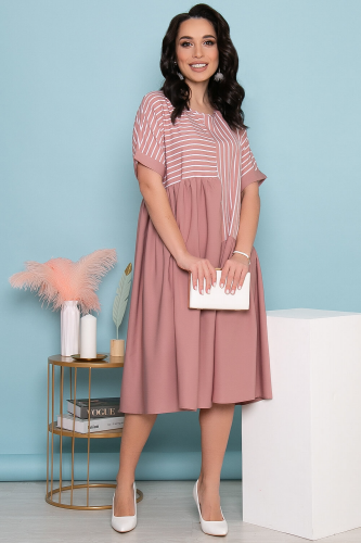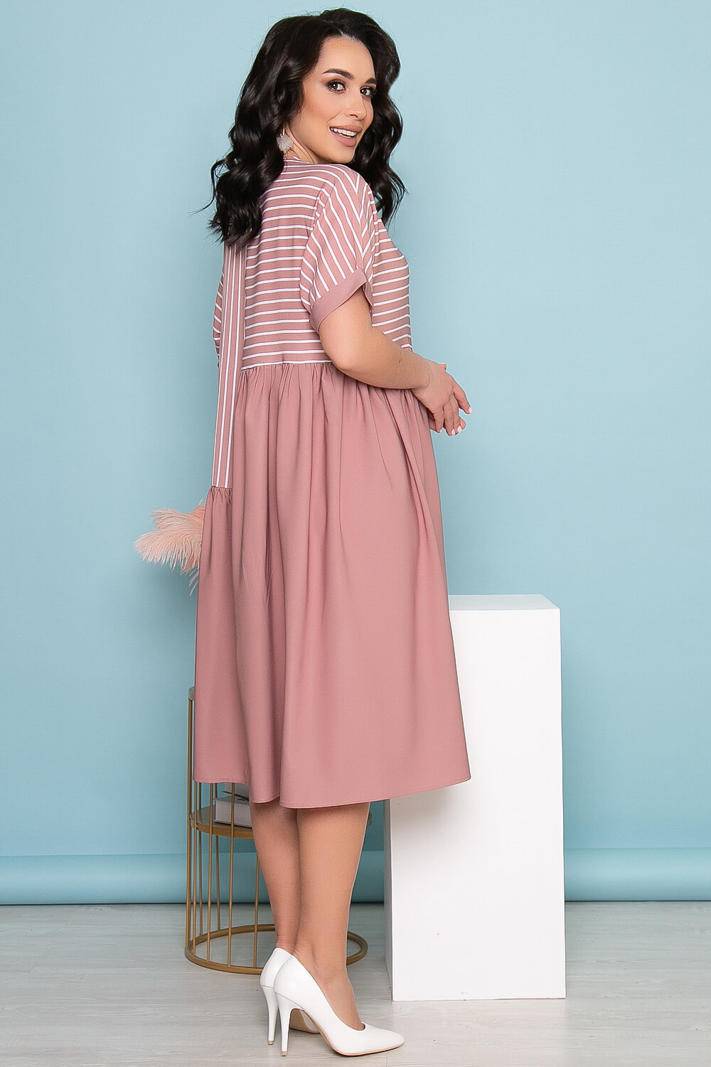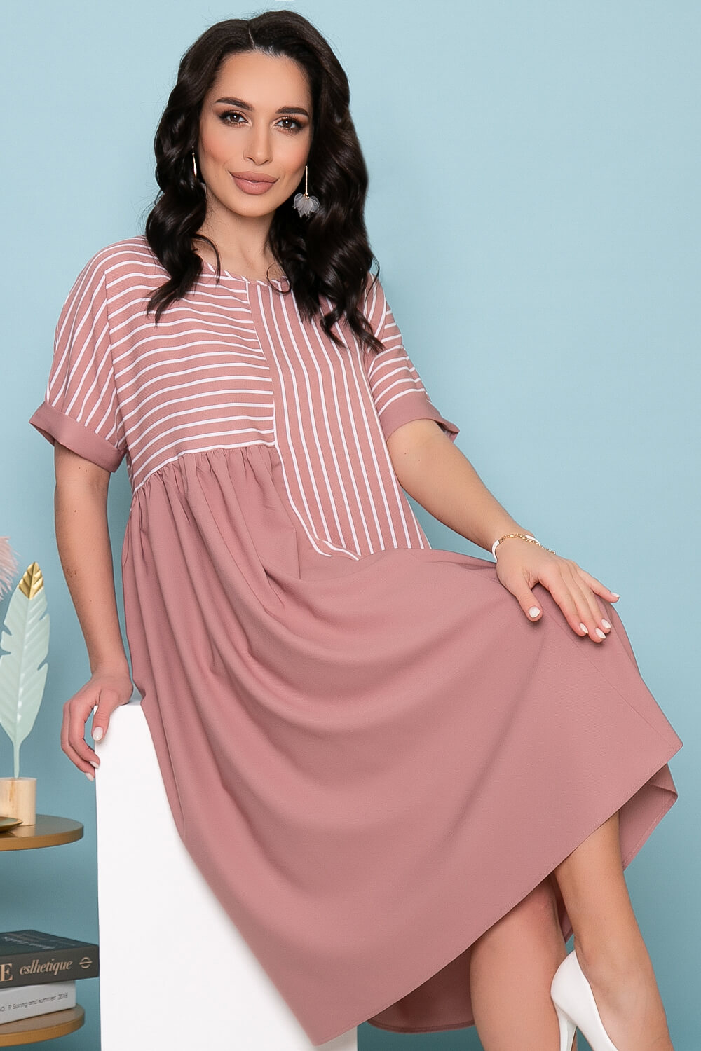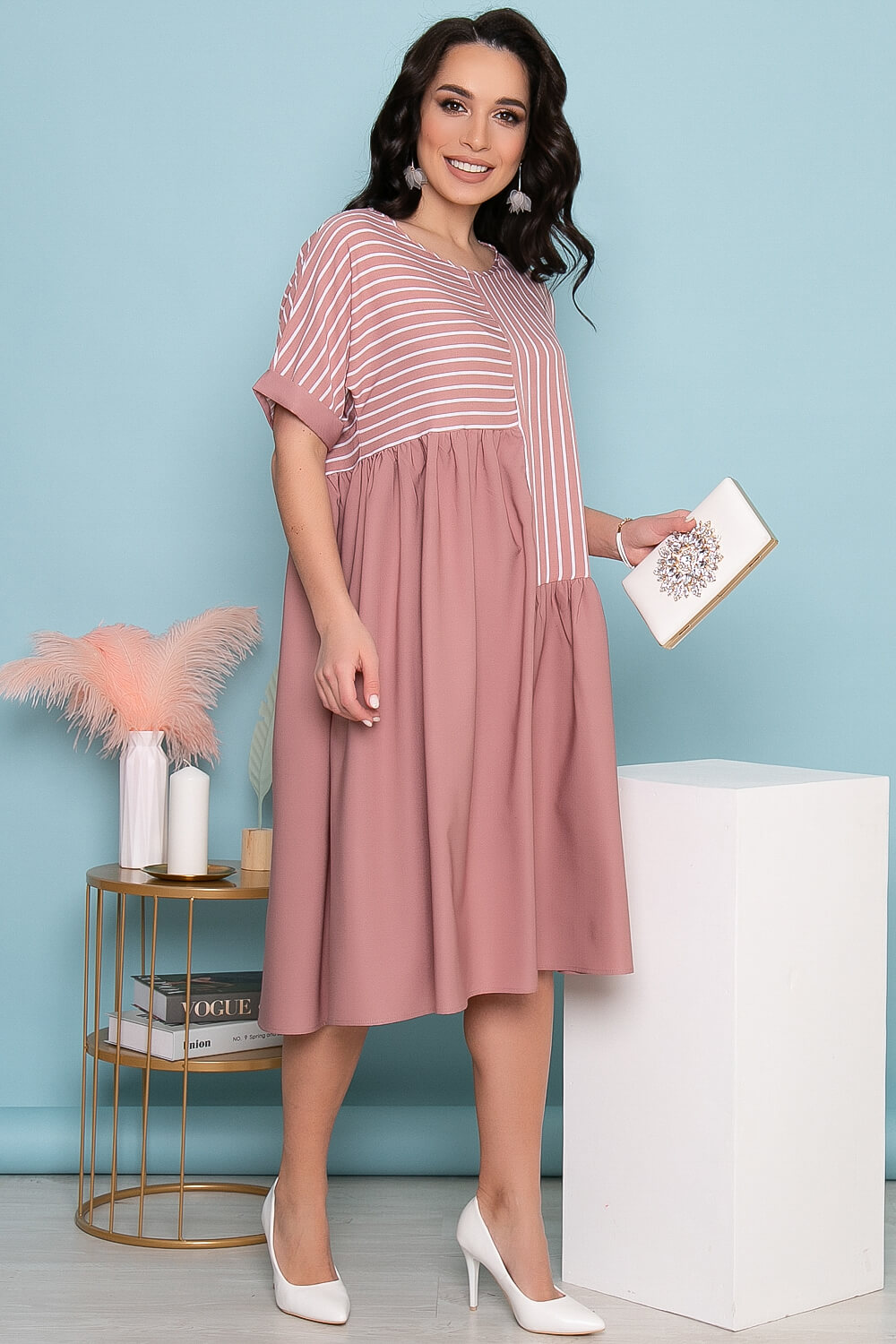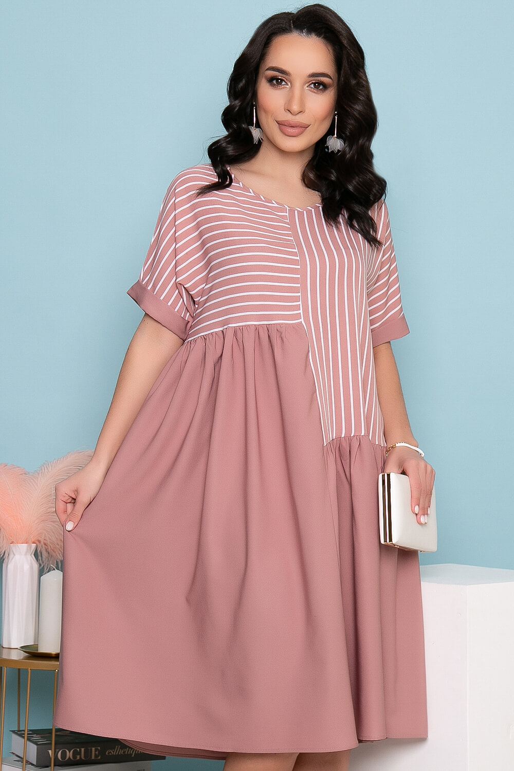 Красивое платье свободного кроя, которое прекрасно подойдет для повседневных образов! А в отпуске так просто незаменимая вещь! Платье свободного силуэта, удобной длины, рукав цельнокроеный - очень комфортен в носке, рукав короткий на манжете. Игра полоски прекрасно корректирует линии фигурки, визуально вытягивая силуэт, благодаря вертикальным полосам. Платья в местах соединения двух видов ткани присборено.