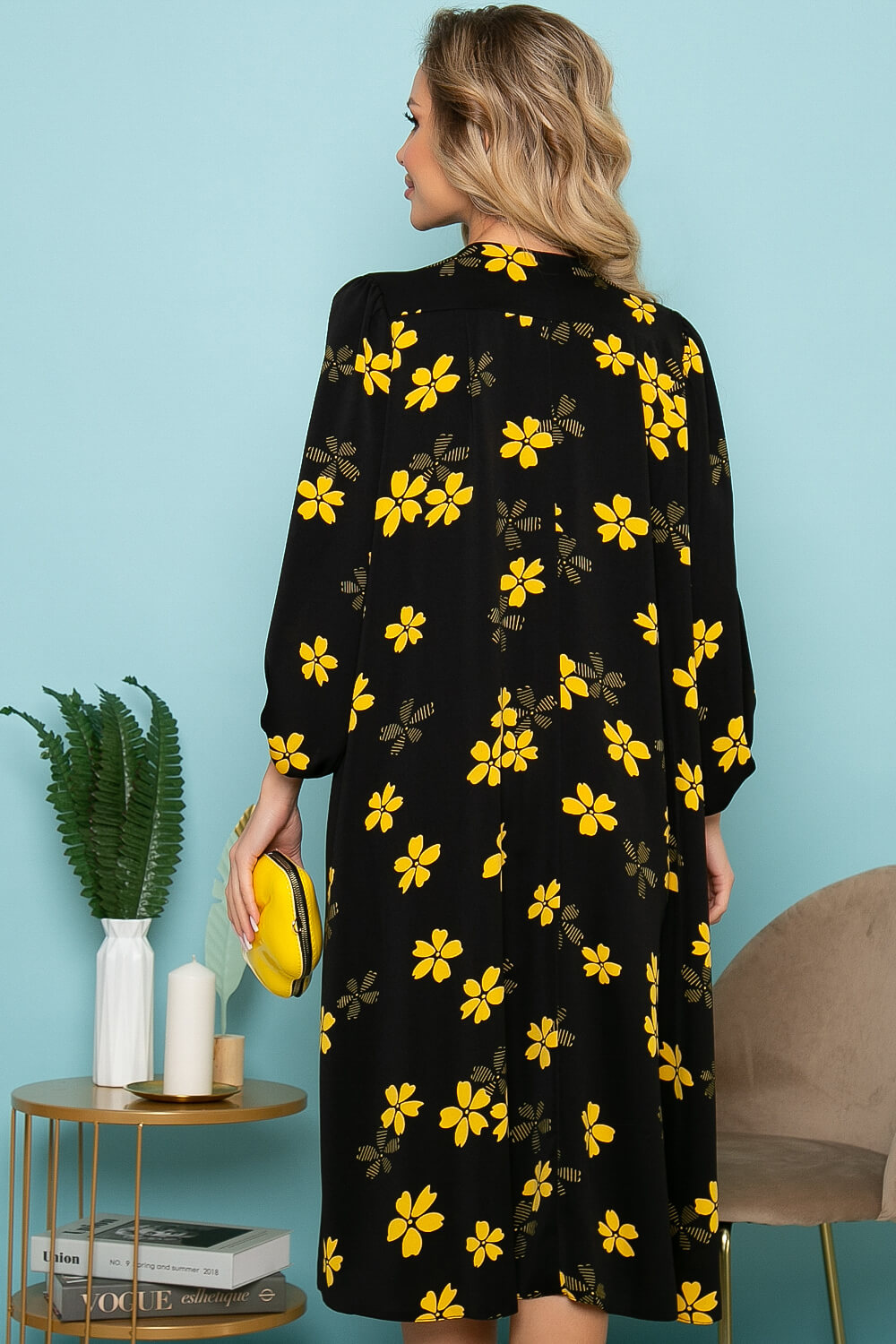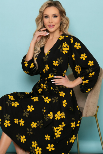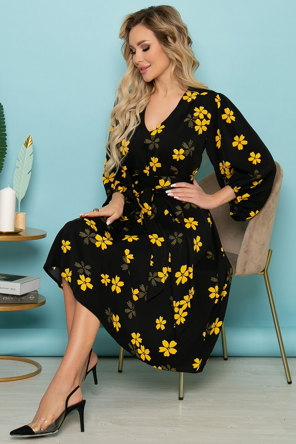 Платье из струящейся ткани - ХИТ продаж! Три метра ткани превратились в шикарное, летящее платье в классическом черном цвете с ярким принтом. Поверьте от Вас не смогут отвести восхищенных взглядов! Платье свободного силуэта. Мягкий V - образный вырез горловины. Интересного кроя рукав - втачной, три четверти, верх присборен, объемный, низ рукава асимметричный на резинке. По спинке отрезная кокетка и декоративные защипы. В комплекте широкий пояс, который можно завязать как кушак или на большой бант.