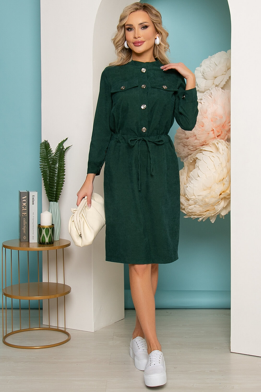 Абсолютный ХИТ - базовое вельветовое платье в красивом изумрудном оттенке средней длины станет незаменимым весной и летом. Комфорт, удобство, стильный фасон, гармоничная длина и ничего лишнего! Это беспроигрышный вариант на каждый день. Платье прямого кроя, талия на кулиске. Воротник-стойка, по груди имитация кармашков. Рукав втачной, семь восьмых, на манжете. По верхней части переда притачная планка на функциональных пуговицах. В боковых швах карманы.
