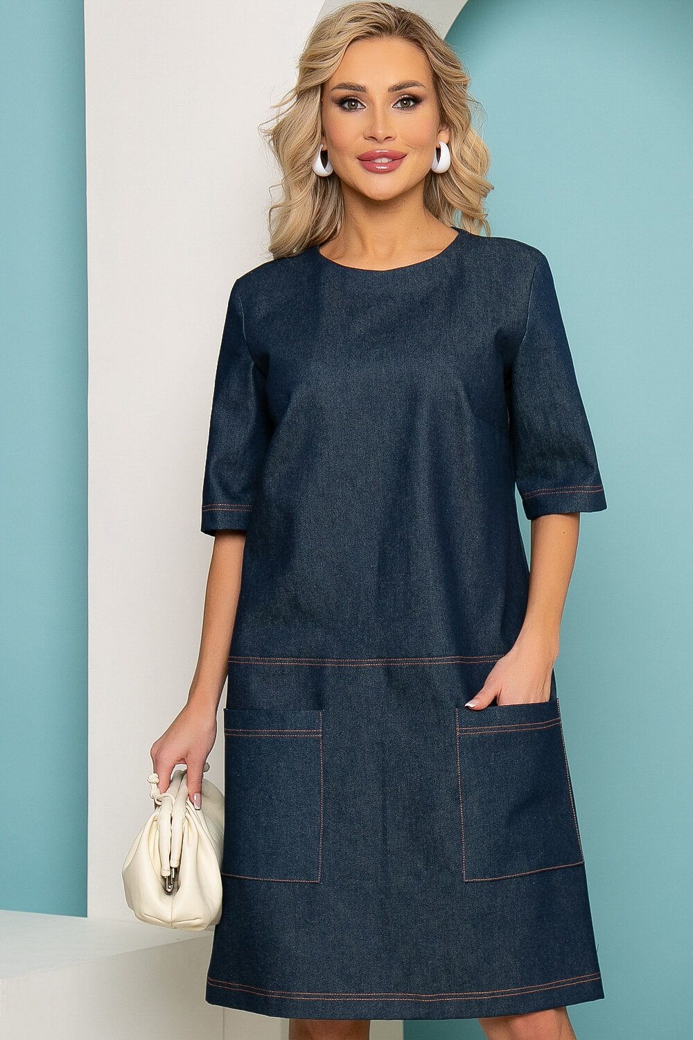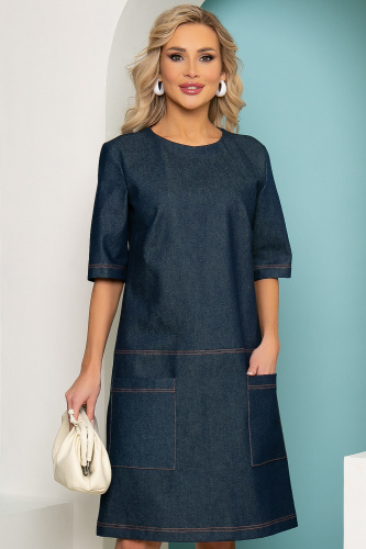 Джинсовое платье прямого кроя в стиле кэжуал на каждый день - это комфорт и удобство. В нём можно отправиться на прогулку или по делам. Платье прямого кроя, округлый вырез горловины, рукав короткий, втачной. Перед скроен из двух частей. Верхняя и нижняя часть переда и спинки соединяются декоративным швом, отстроченным контрастными нитками. По спинке потайная молния, по переду накладные карманы.