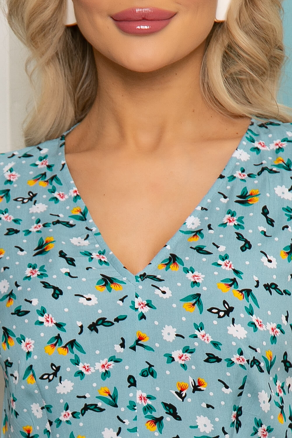- Цвет: голубой, принт: флористический;