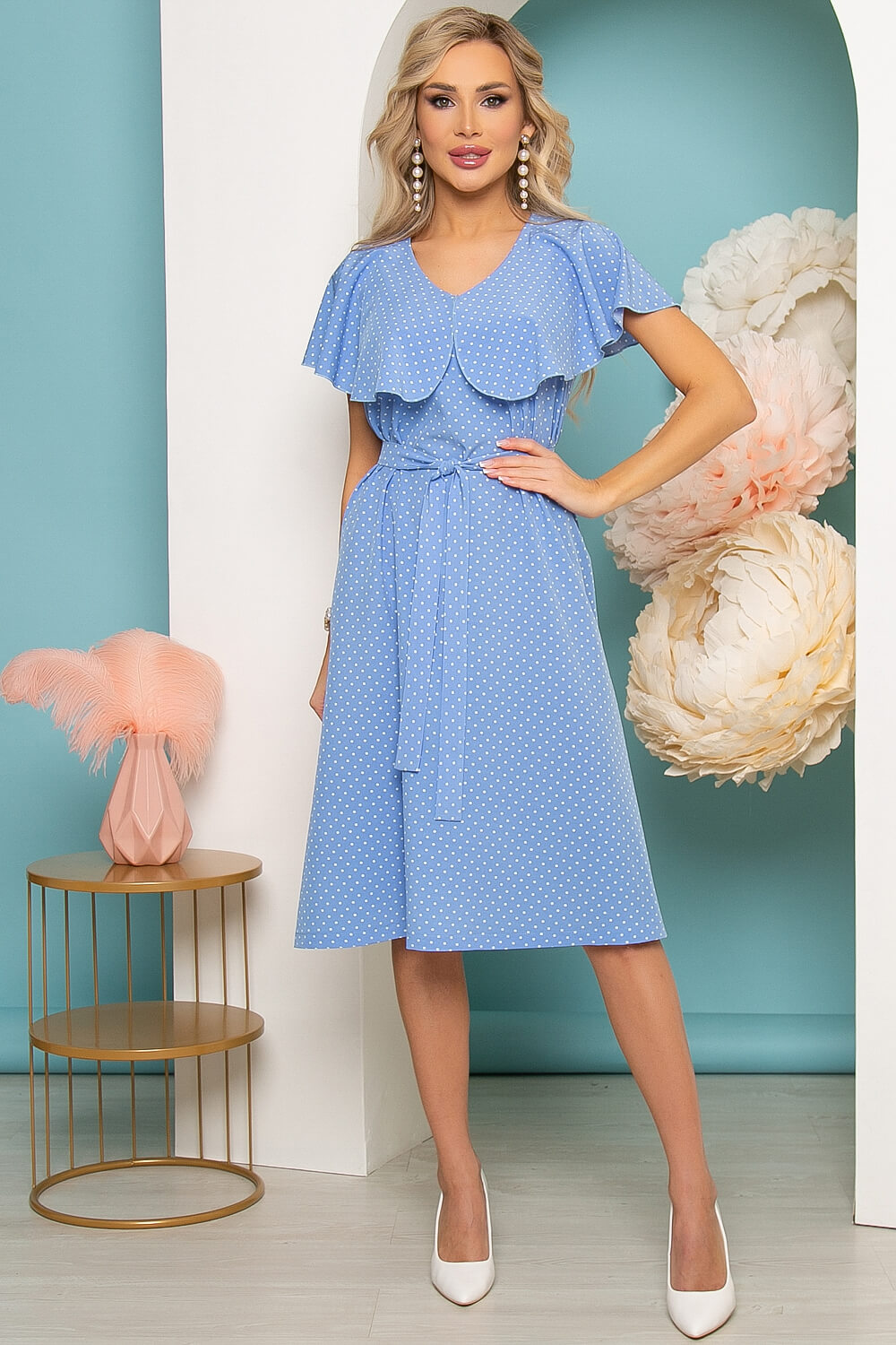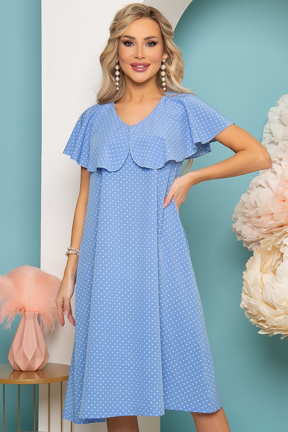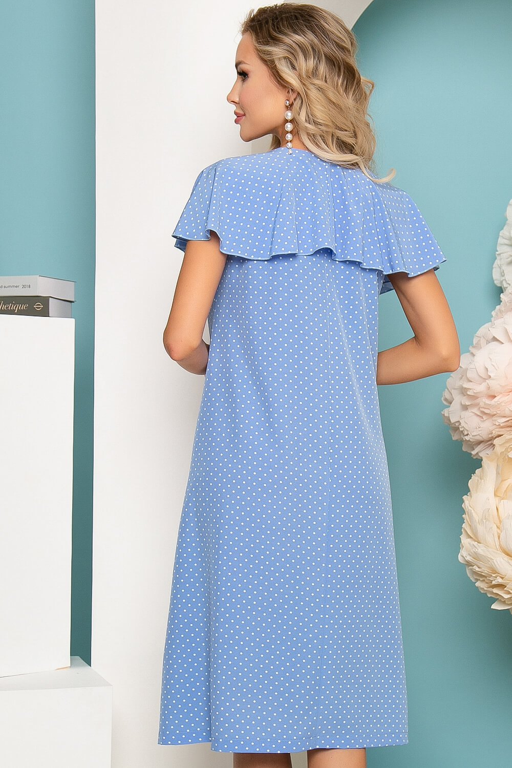 - Цвет: нежно-голубой, принт: горошек;