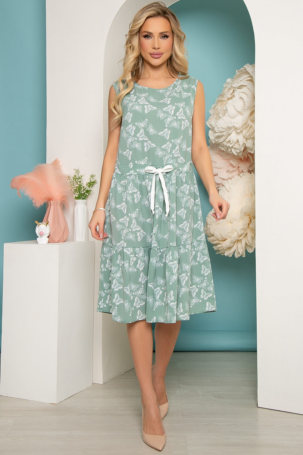 Платье-сарафан в нежном мятном оттенке отвечает всем требованиям стиля минимализм: лаконичный дизайн и отсутствие лишних декоративных элементов . Идеальное платье на каждый день. Платье-трапеция, талия на кулиске. юбка состоит из широких ниспадающих воланов. Округлый вырез горловины, без рукава.