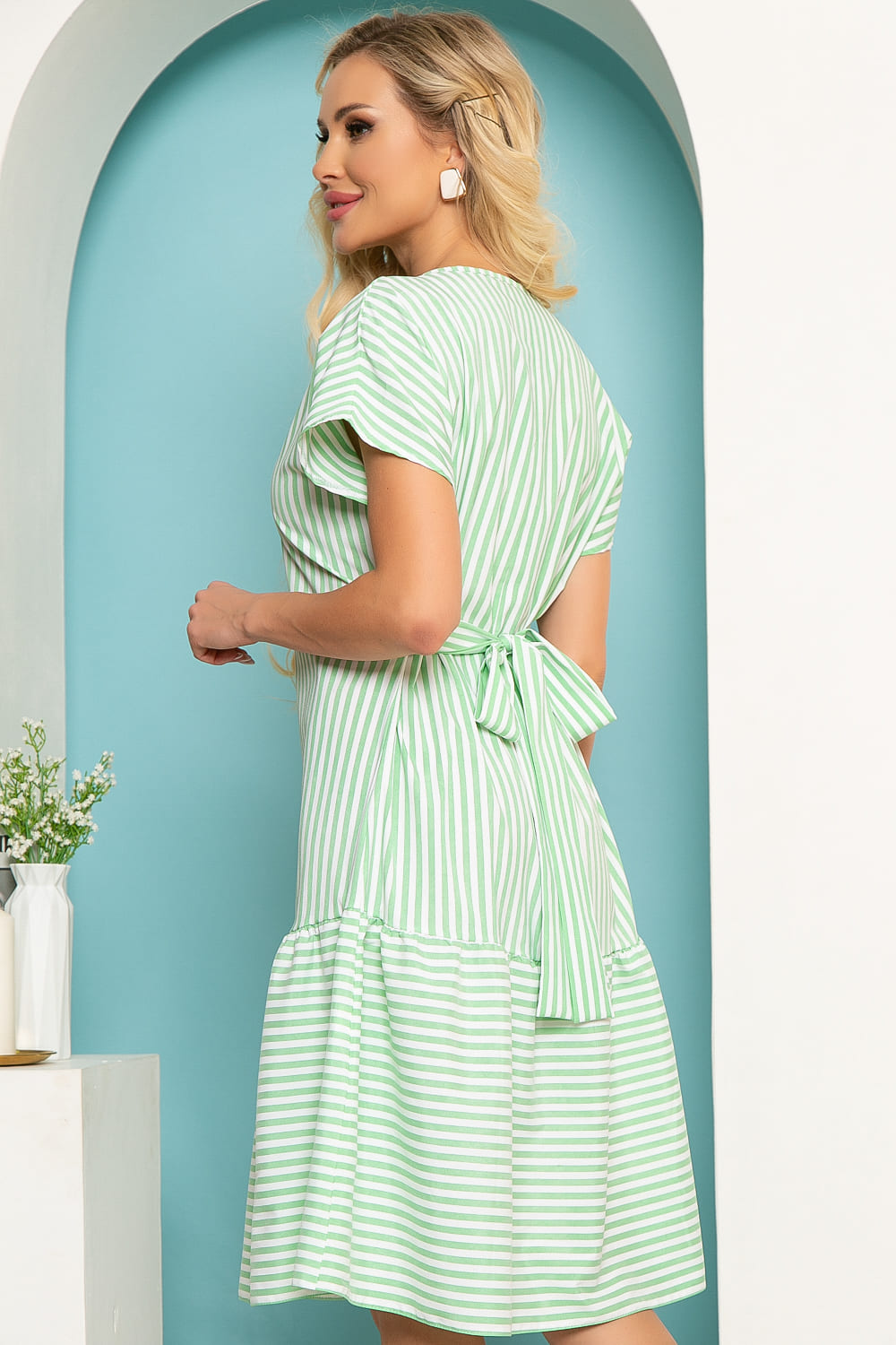 Белое платье в полоску актуально во все времена. Обладает прекрасным свойством освежать образ. Платье свободного кроя с широким воланом по низу оснащено вшитым поясом, который можно завязать по спинке или переду, подчеркнув талию или оставив её расслабленной. Округлый вырез горловины можно дополнить аксессуарами, короткий рукав не утяжеляет и дарит дополнительную прохладу в жаркую погоду. Платье без замков, без подкладки.