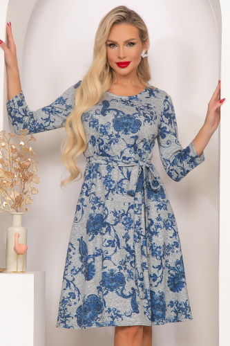 Трикотажное платье в холодный сезон 2022 года – must have женских гардеробов. Комфортная модель просто создана для того, чтобы украшать собой осенние и зимние дни, дарить тепло и радость своей обладательнице. В данной модели акцентной является юбка-клёш и заниженная линия талии. Если подчеркнуть талию поясом, который входит в комплект, получится очень женственный образ. Рукав втачной, три четверти.