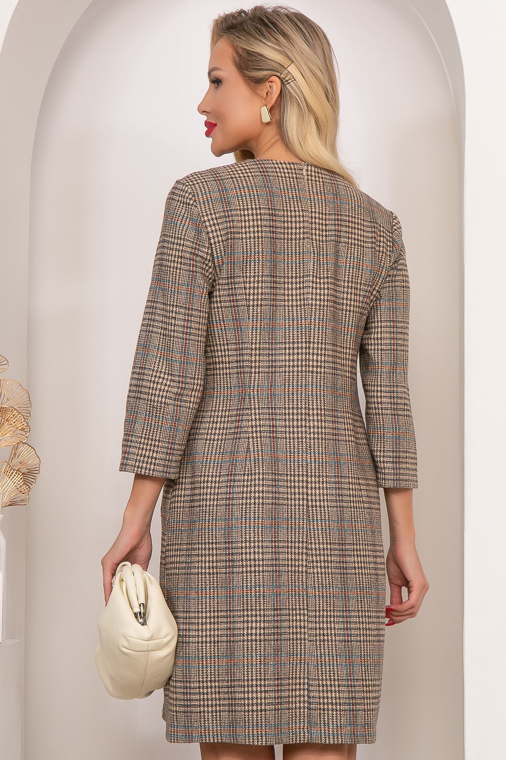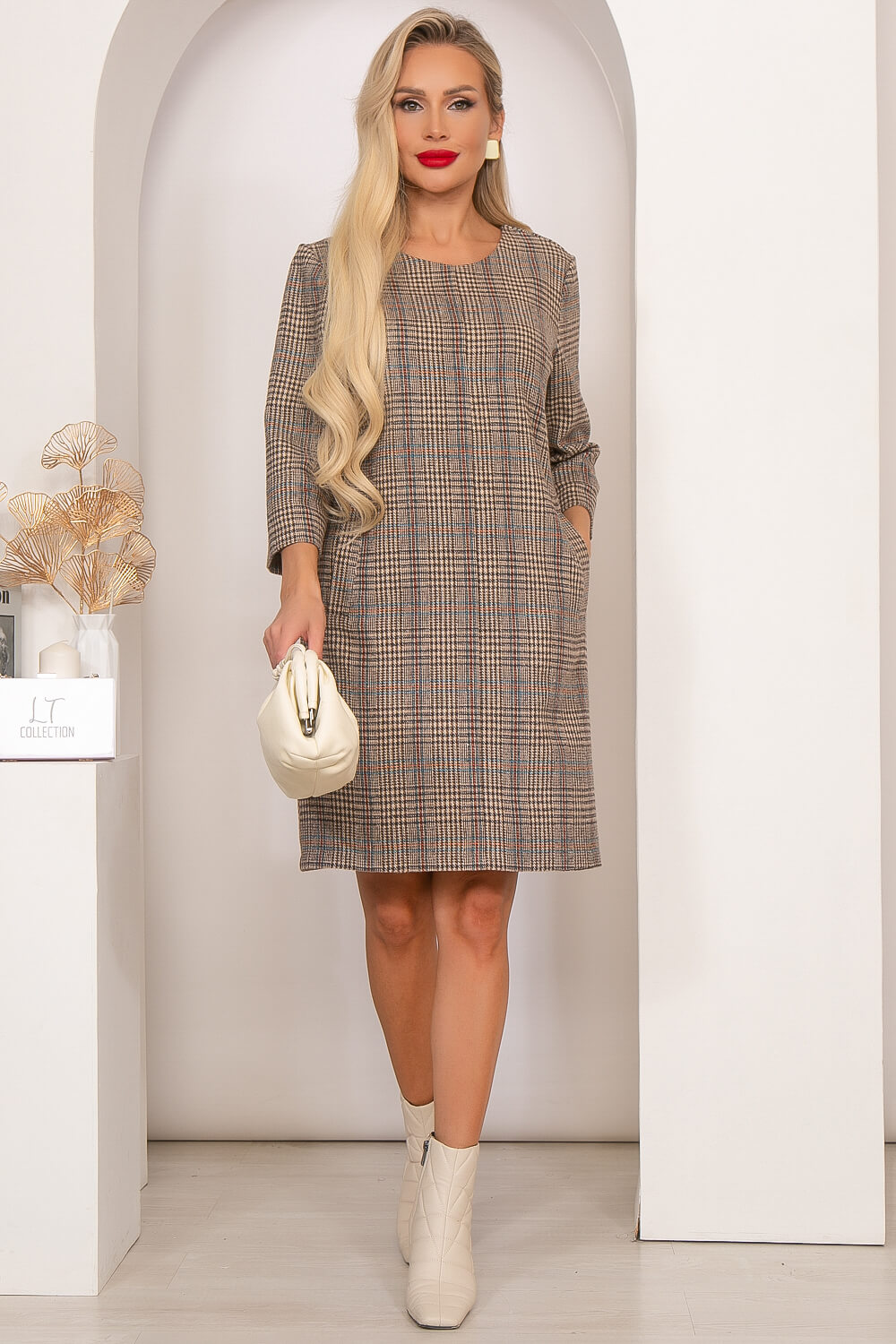 Платье в клетку в прохладный сезон 2022 года – must have женских гардеробов. Комфортная модель просто создана для того, чтобы украшать собой осенние и зимние дни, дарить тепло и радость своей обладательнице. Модель платья очень лаконична в своём исполнении, что позволяет выбрать её для повседневного гардероба. Платье имеет рукава удобной длины - три четверти. Прекрасно будет сочетаться с ботинками, лоферами, сапогами и туфлями на каблуке.