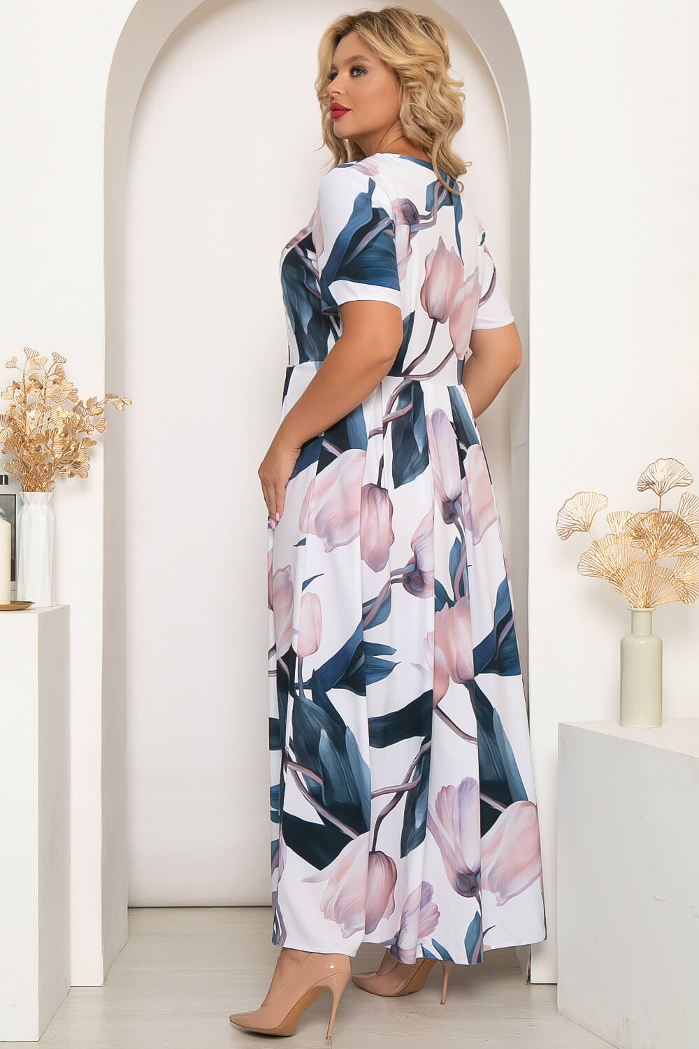 Невероятно эффектное платье длины макси из шелковистой струящейся ткани с цветочным принтом. Платье для создания самого женственного образа. Рукав втачной, укороченный, в комплект входит пояс-кушак, который красиво формирует линию талии.
