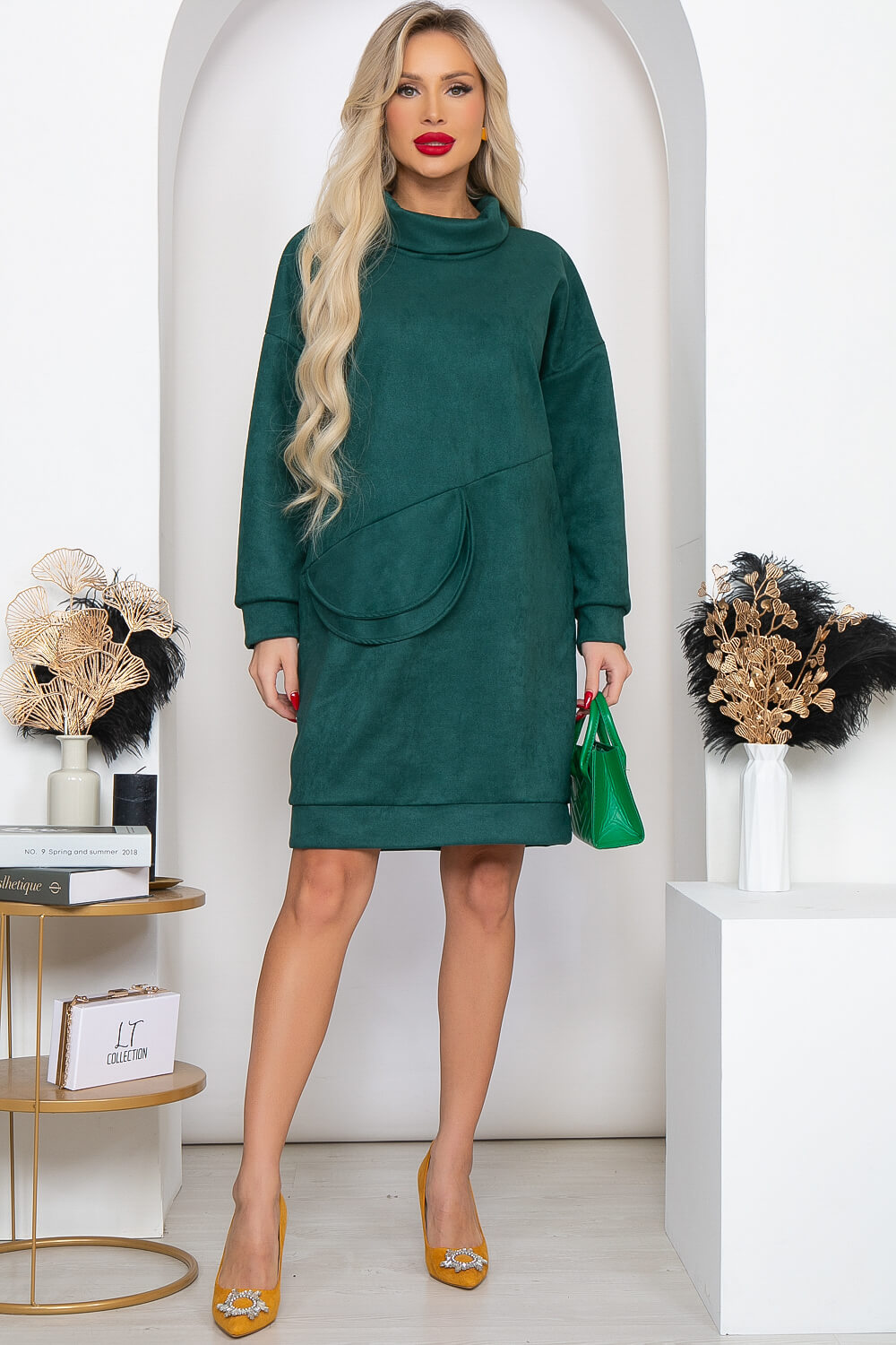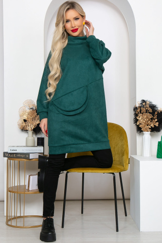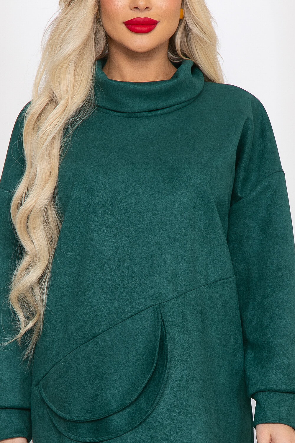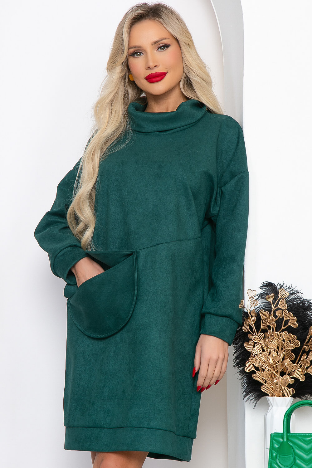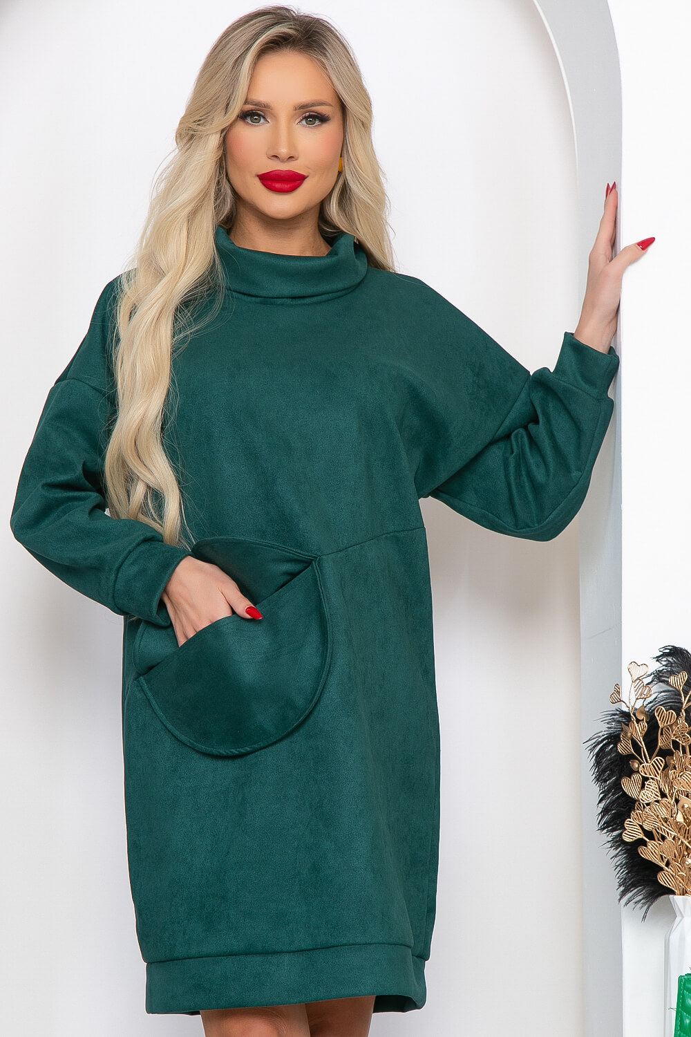 Что может быть комфортнее мягкого платья из замши в стиле оверсайз в прохладное время года? Самая универсальная модель для стильных образов на каждый день. Платье свободного кроя с навесным карманом на диагональном шве в передней полочке. Низ платья на манжете. Свободный воротник-стойка подарит комфорт в ветреную или прохладную погоду.