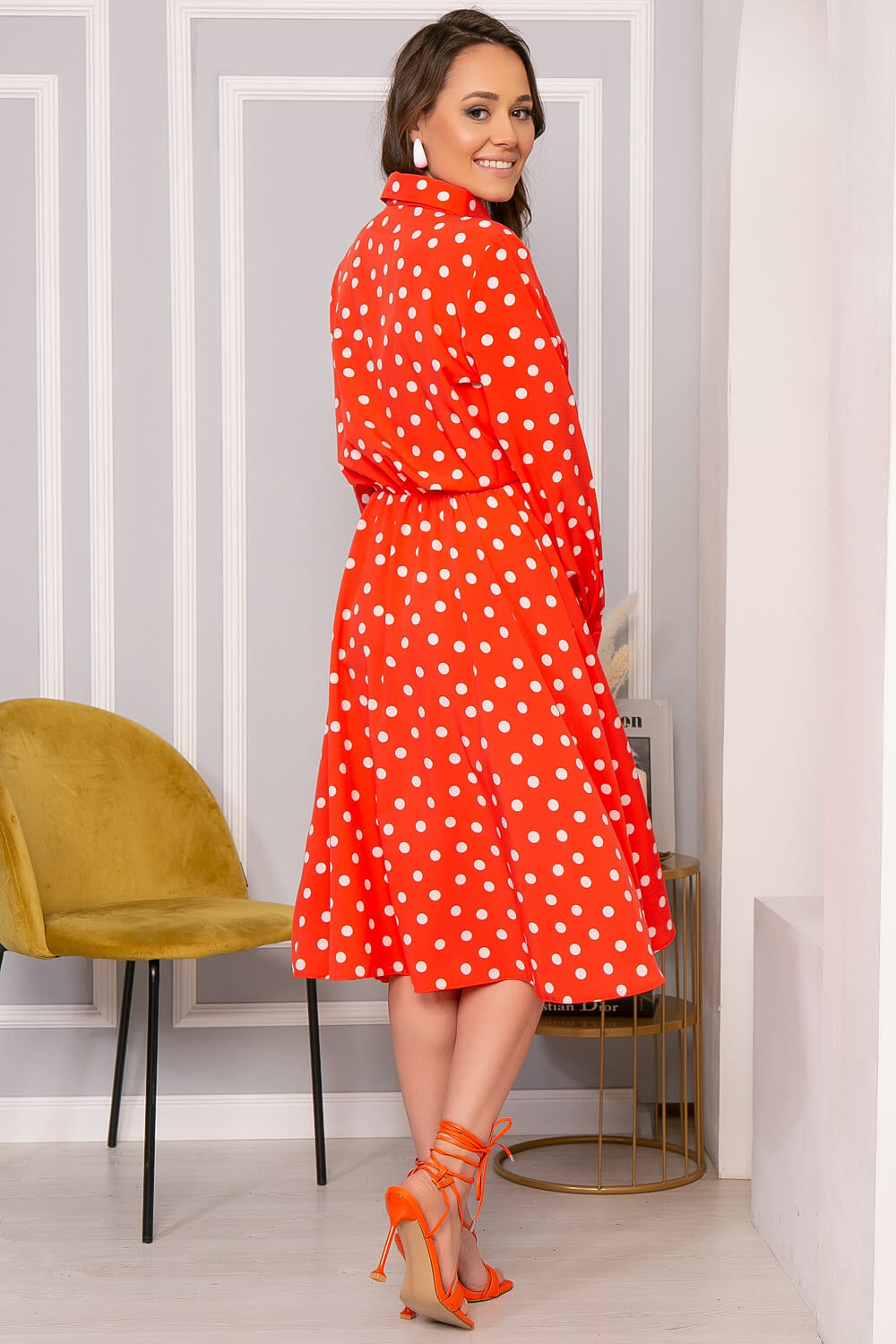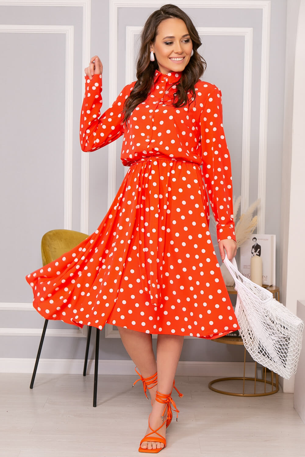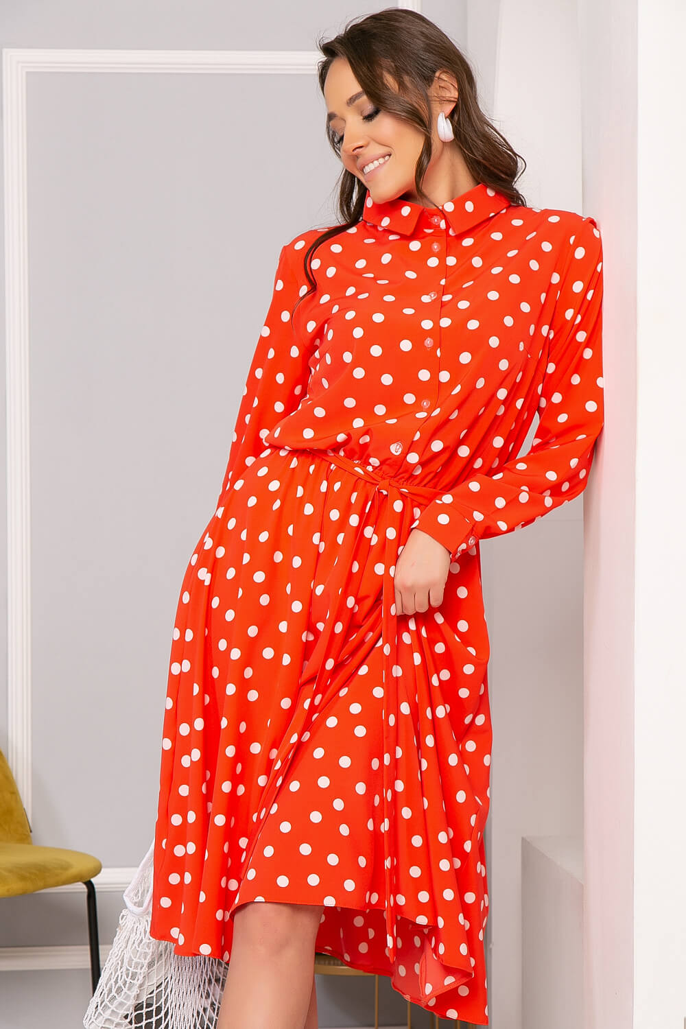 Тренд сезона 2023 года - стильное элегантное платье-рубашка. Такая модель подойдёт как для создания делового, так и повседневного образа. Подобрать аксессуары можно легко, всё зависит от вашего настроения и ситуации. В классическом варианте платье отлично выглядит с туфлями на каблуке, но в более тёплый период. Пояс из основной ткани входит в комплект. Благодаря летящей юбке такая модель платья выглядит очень женственно и элегантно. Кстати, такое платье обязательно стоит взять с собой отпуск! Оно неприхотливо в выборе аксессуаров и может быть использовано и в качестве нарядного и в качестве повседневного образа.