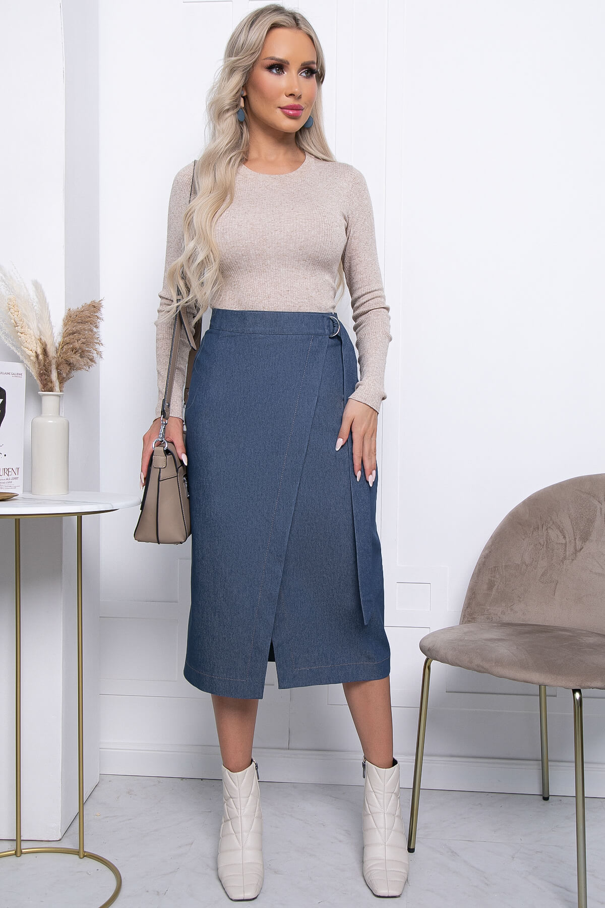 Та самая юбка с безупречной посадкой! Данная модель будет гармонична в повседневных образах в сочетании с плотными джемперами, кроп топами и свитерами. При помощи внутренних липучек можно немного регулировать ширину юбки по талии. Дополнительно зафиксировать юбку позволит пояс.