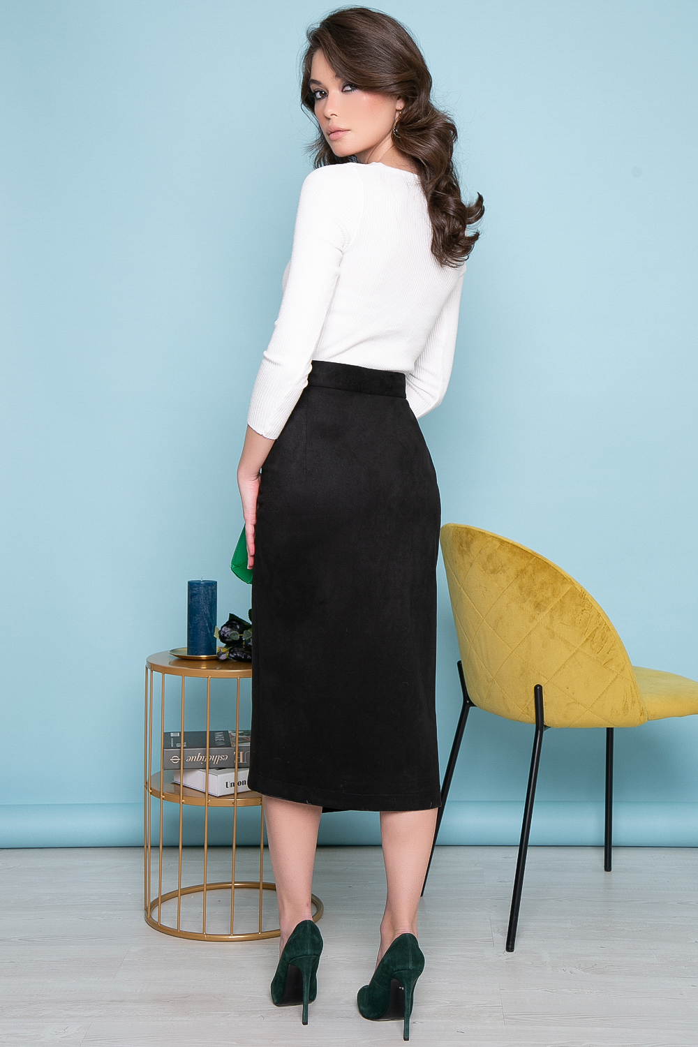 Идеальная юбка-карандаш облегающего силуэта из замши на пуговицах по переду. Сегодня юбка стала элементом не только офисного, но и повседневного образа. Юбку-карандаш можно сочетать с туфлями, кедами, с принтованными рубашками и свитерами. Такая юбка подчеркнет Вашу индивидуальность. Юбка длины миди, скроенная на запах из замши. Высокая посадка, притачной пояс. Юбка без подкладки.