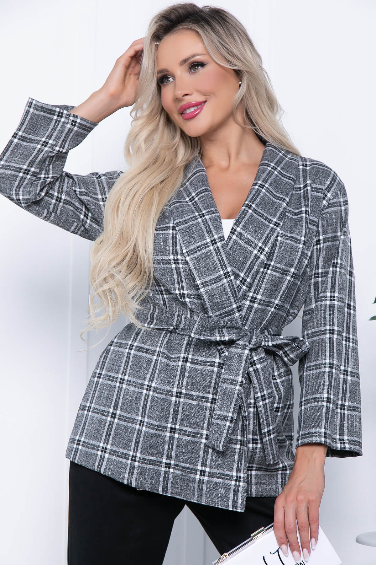 Наша стильная новинка поможет создать вам неповторимый образ для любого случая! Подойдет как для повседневного образа, так и для деловой встречи. Жакет, скроенный на запах имеет характерный V-образный вырез горловины, красиво подчёркивающий зону декольте. В комплект входит пояс из основной ткани. Такой жакет прекрасно подойдёт в качестве второго слоя в офисном и повседневном образах.