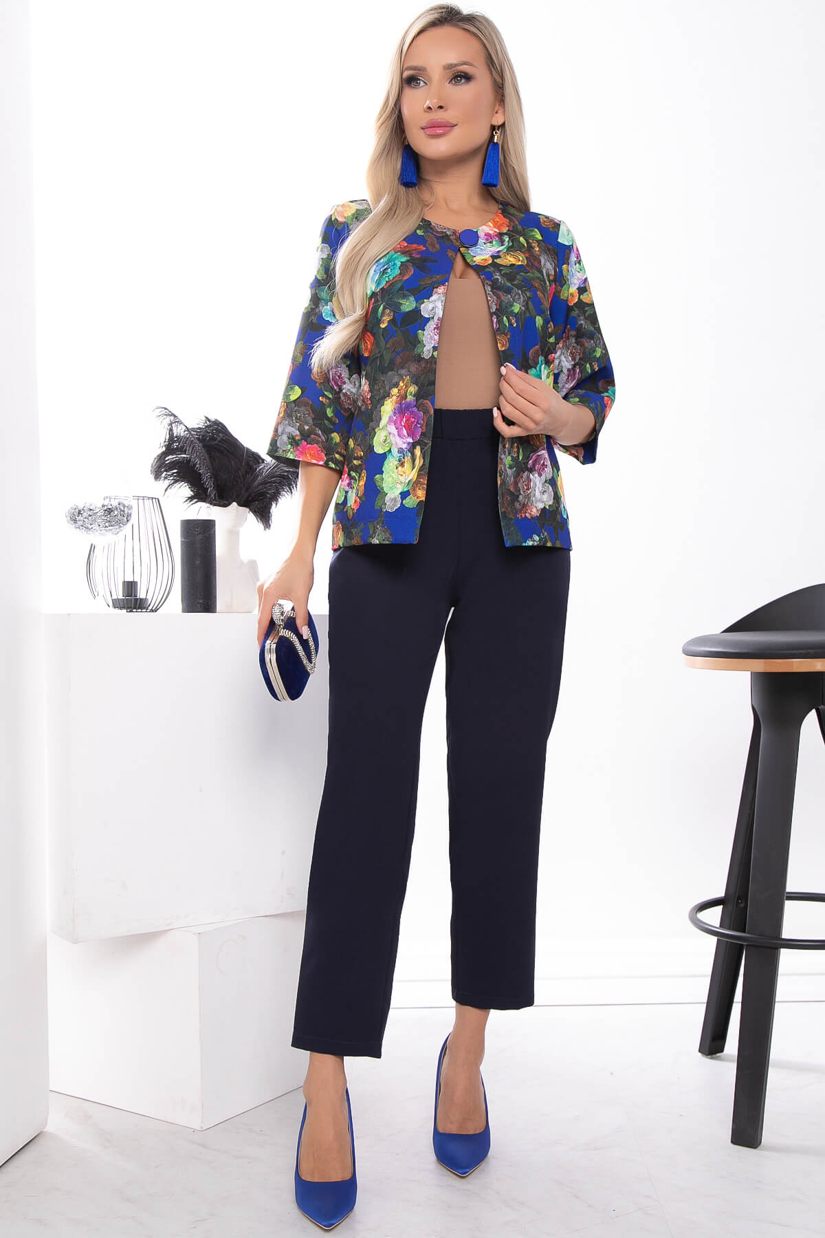 Классический жакет прямого кроя украсит Ваш деловой или праздничный образ. Жакет застёгивается по горловине на пуговицу. Рукав три четверти. Жакет без подкладки. Жакет универсален и подходит на любой случай!