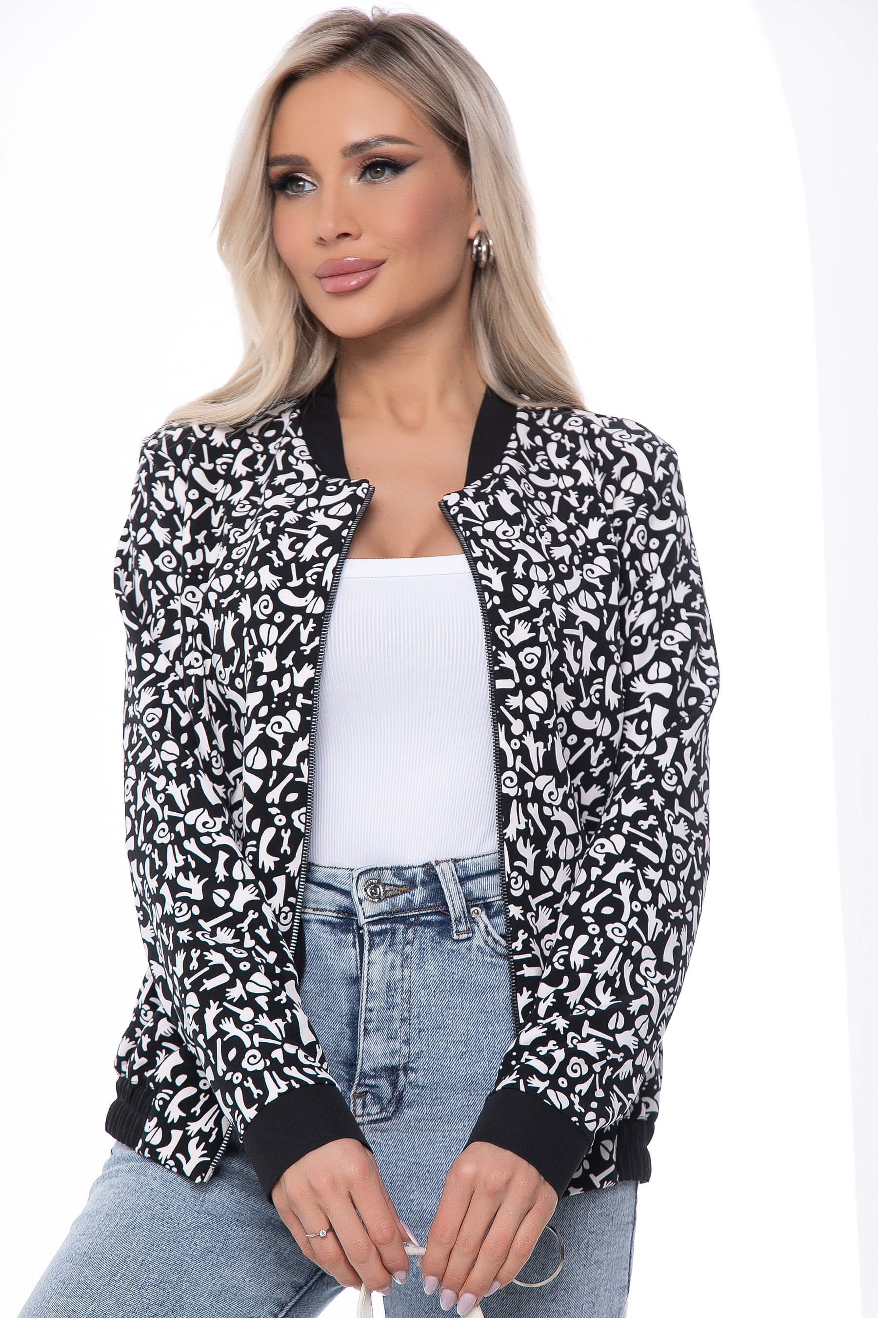 Бомбер на молнии (черно-белый) Б8850