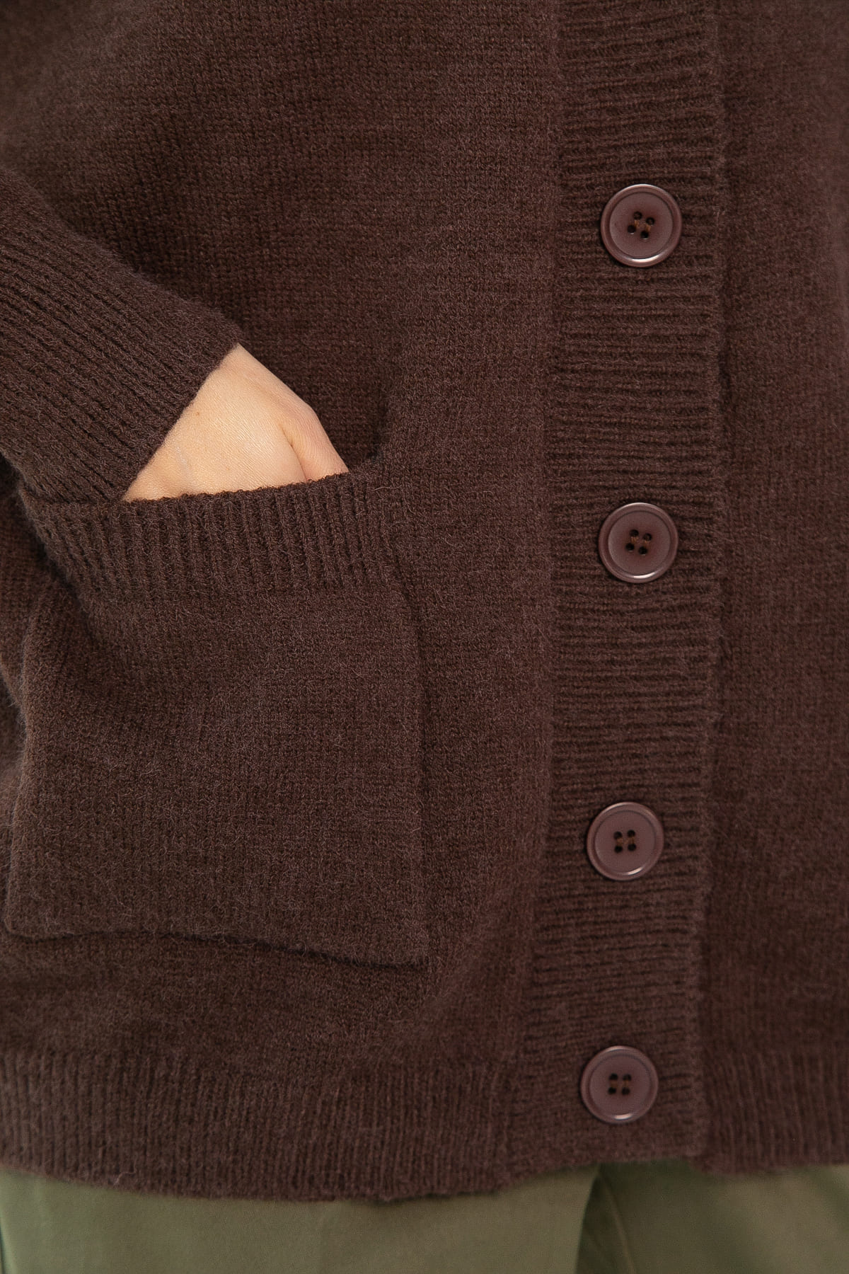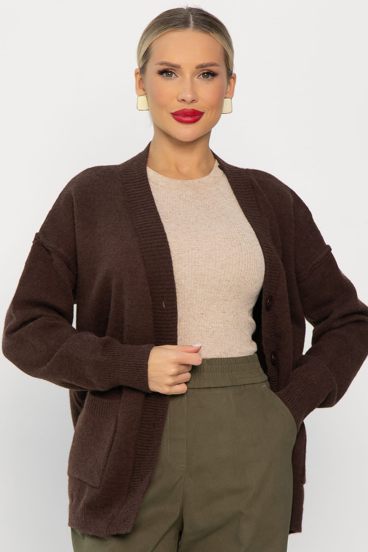 Этот уютный кардиган шоколадного цвета станет отличным дополнением к вашему гардеробу! Он сочетает в себе комфорт и универсальность, что делает его идеальным выбором для повседневных образов. Кардиган прекрасно сочетается с джинсами, платьями и юбками, что позволяет создавать разнообразные стильные комбинации. Будь то учёба, работа или прогулка с друзьями — этот кардиган станет незаменимым элементом вашего стиля.