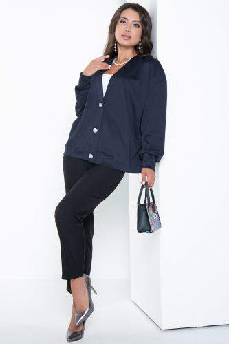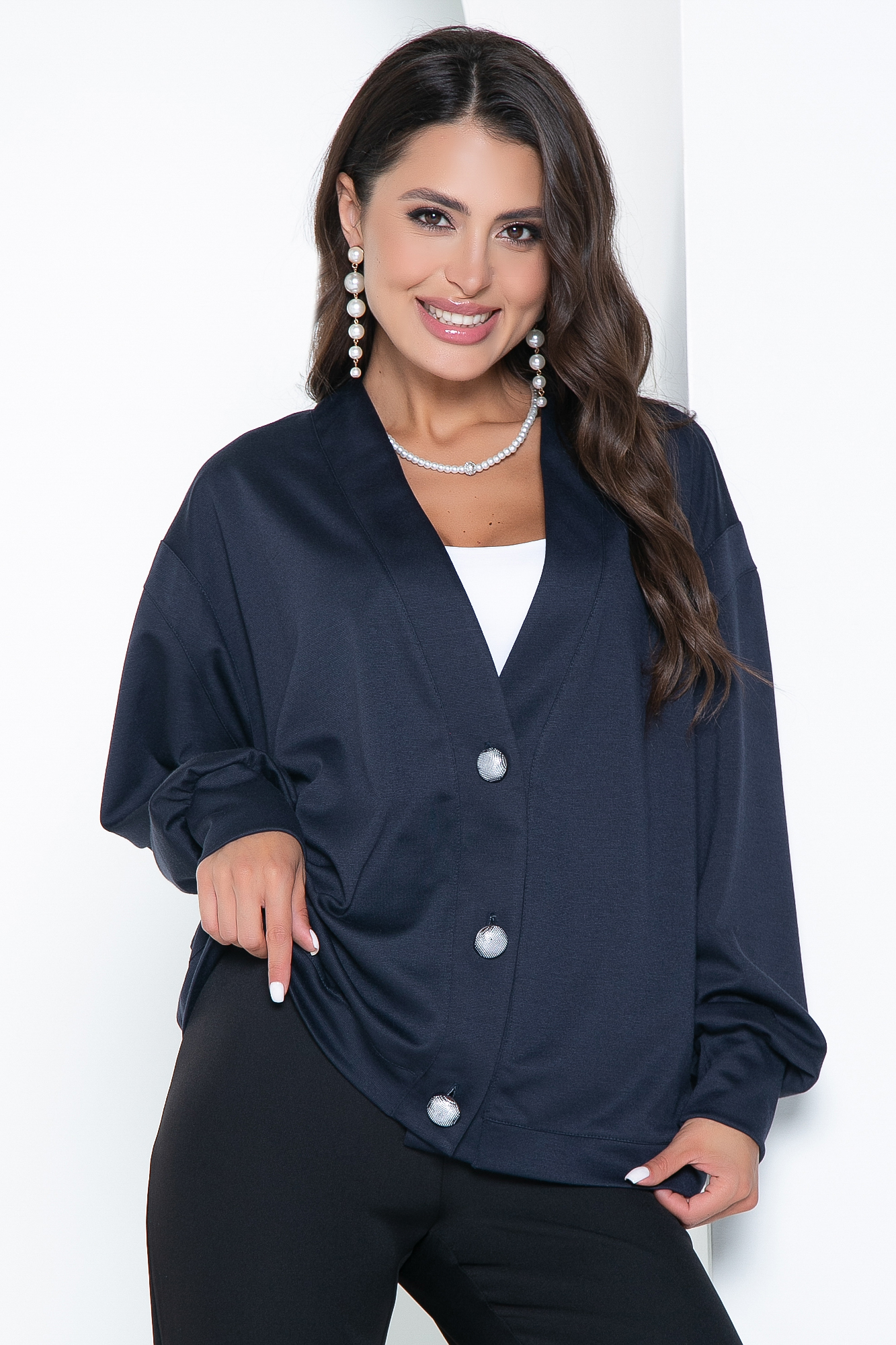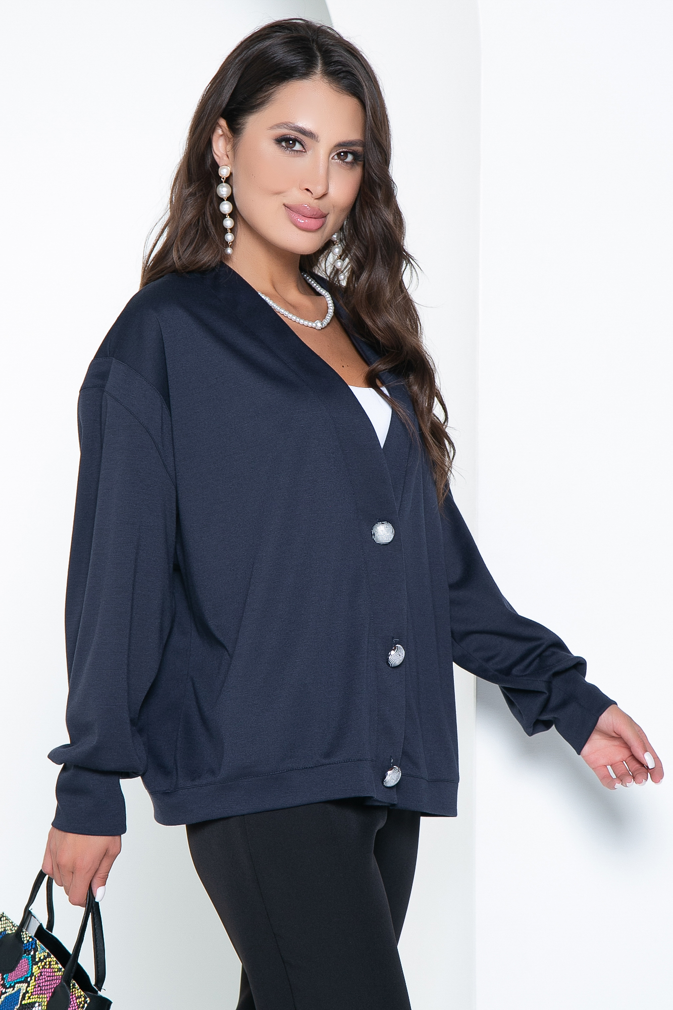 - Трикотажный укороченный кардиган на пуговицах в глубоком сапфировом оттенке;