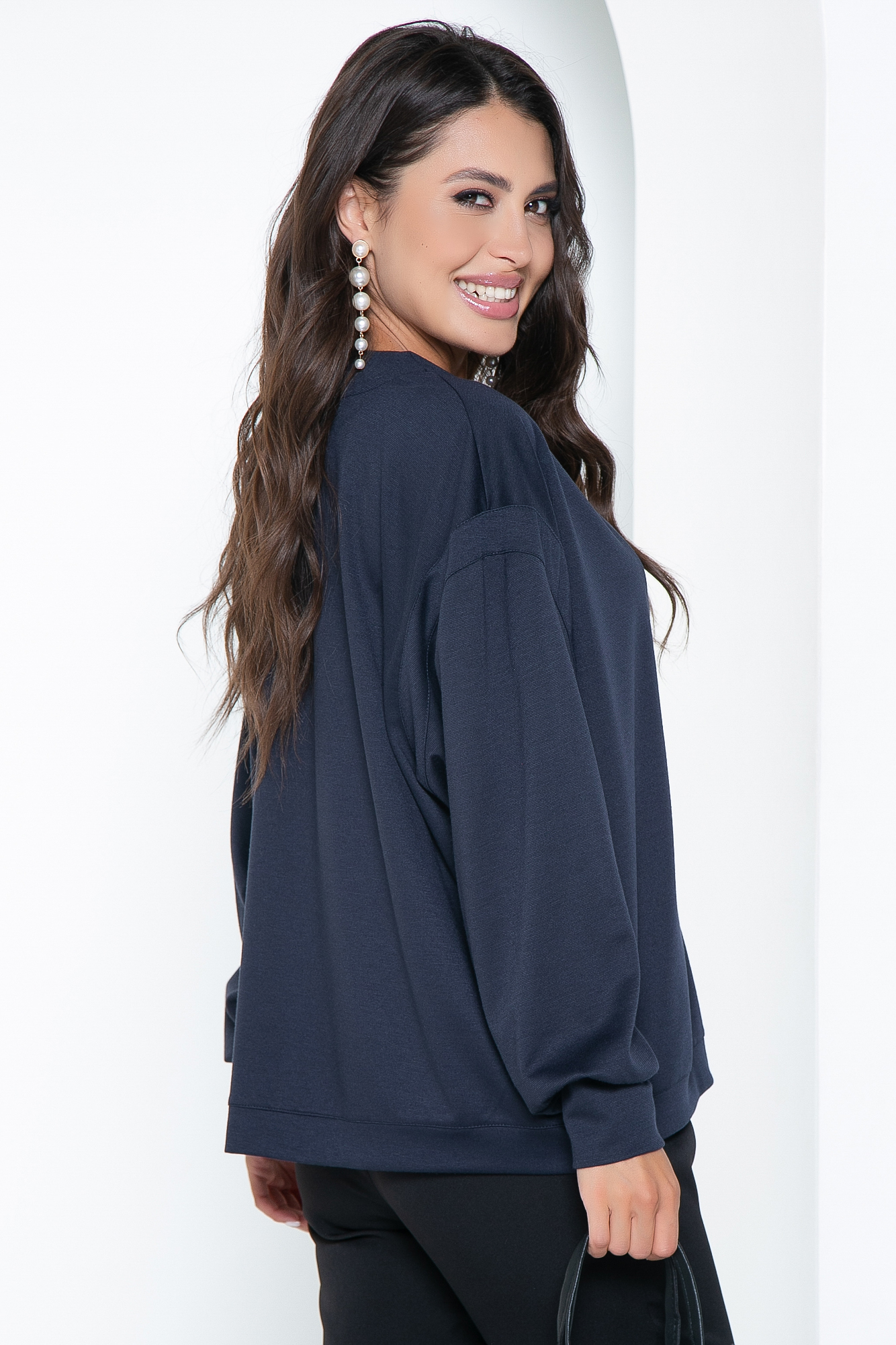 - Рукав цельнокроеный, длинный, объемный, на широкой манжете, линия плеча опущена и декорирована вшивной планкой;