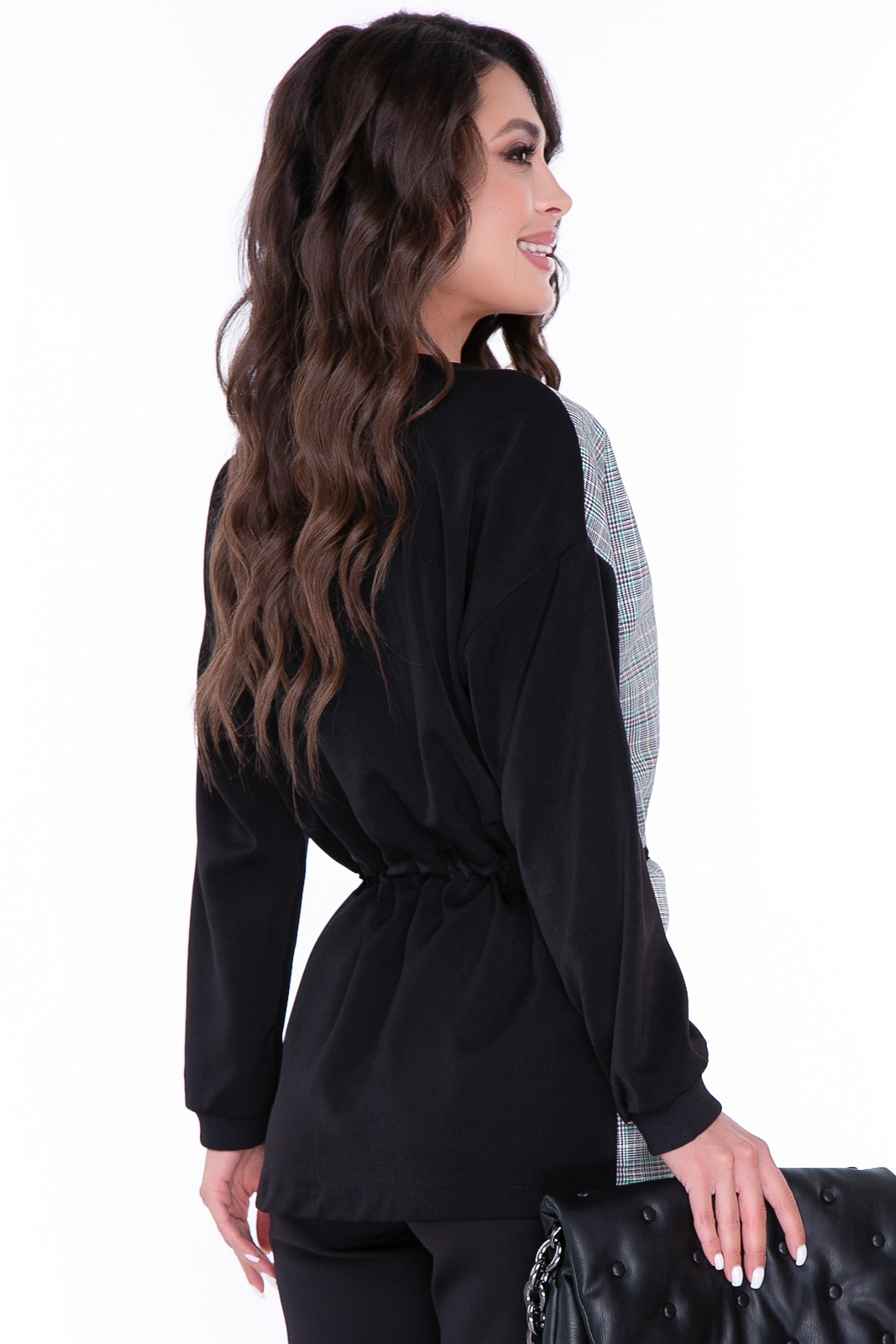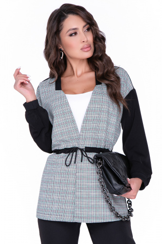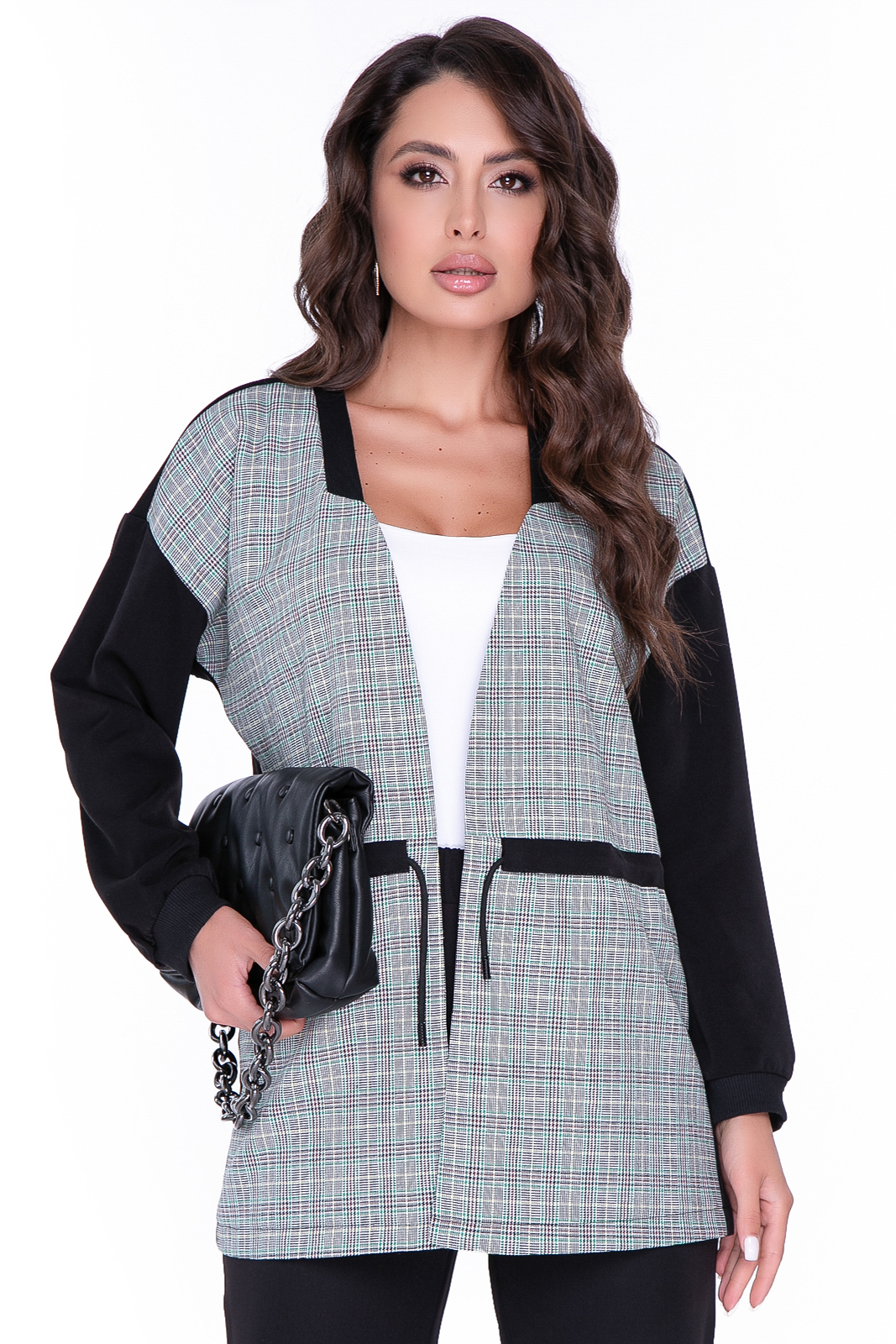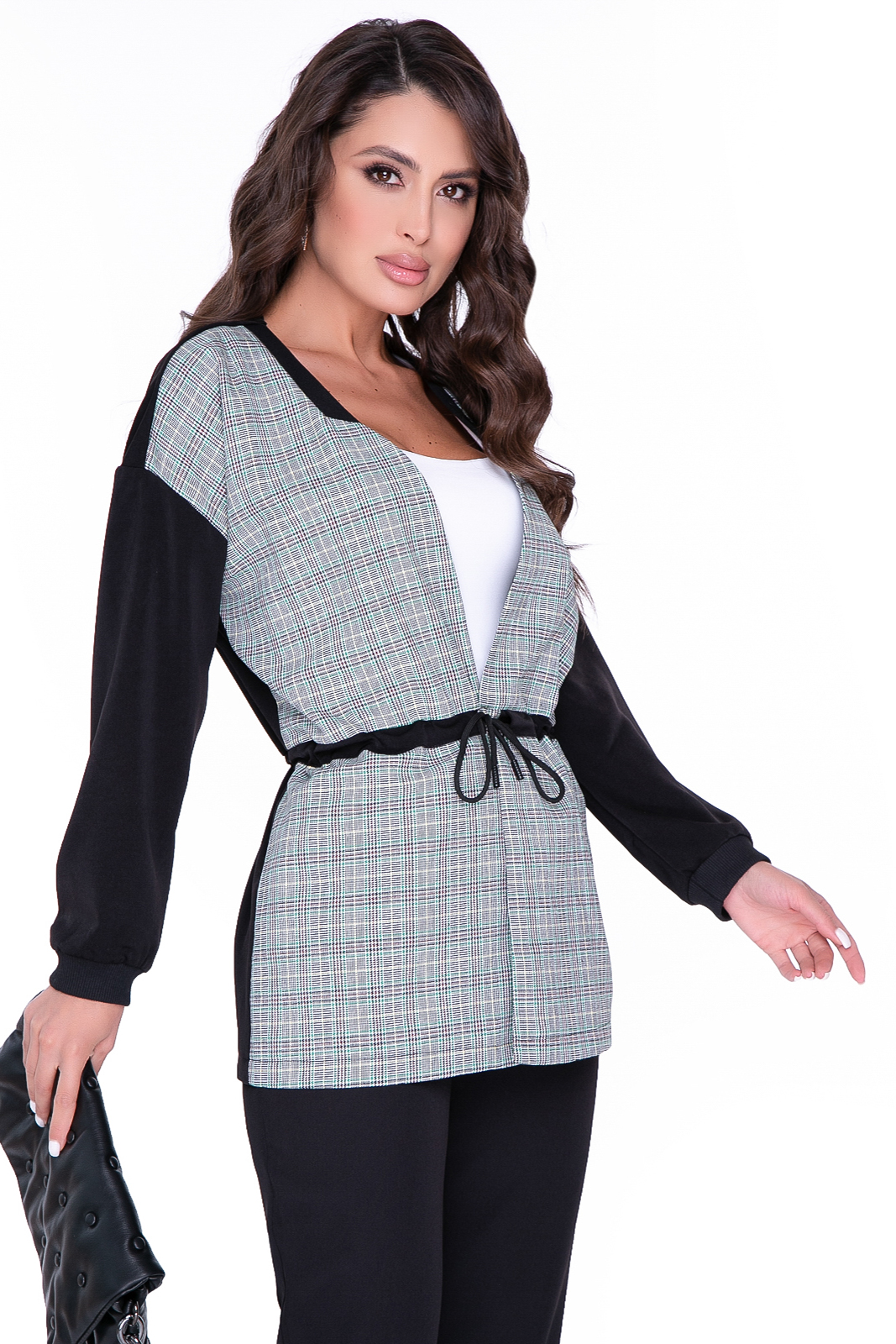 - Спинка, рукава - из черной ткани, перед выполнен из костюмной ткани в клетку;